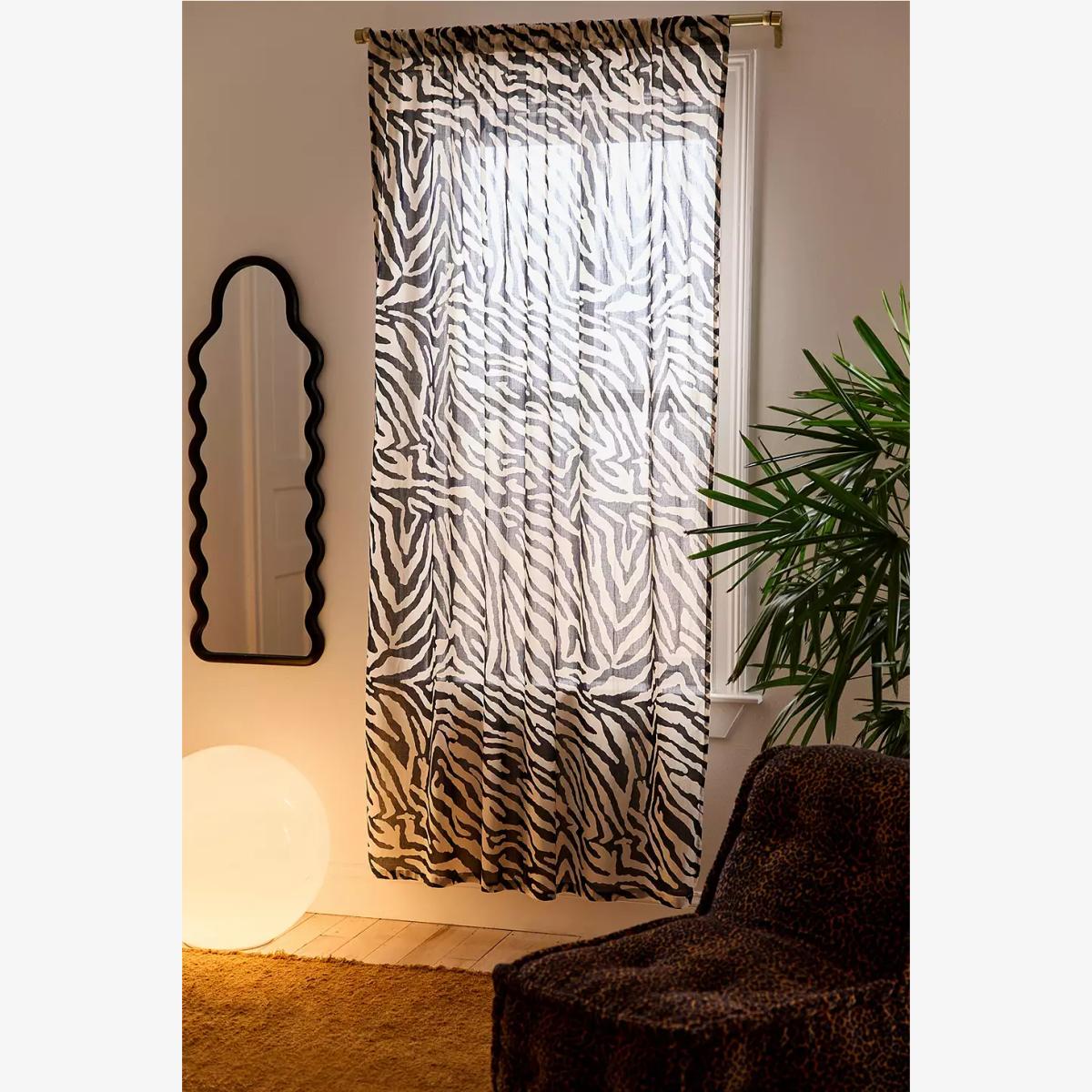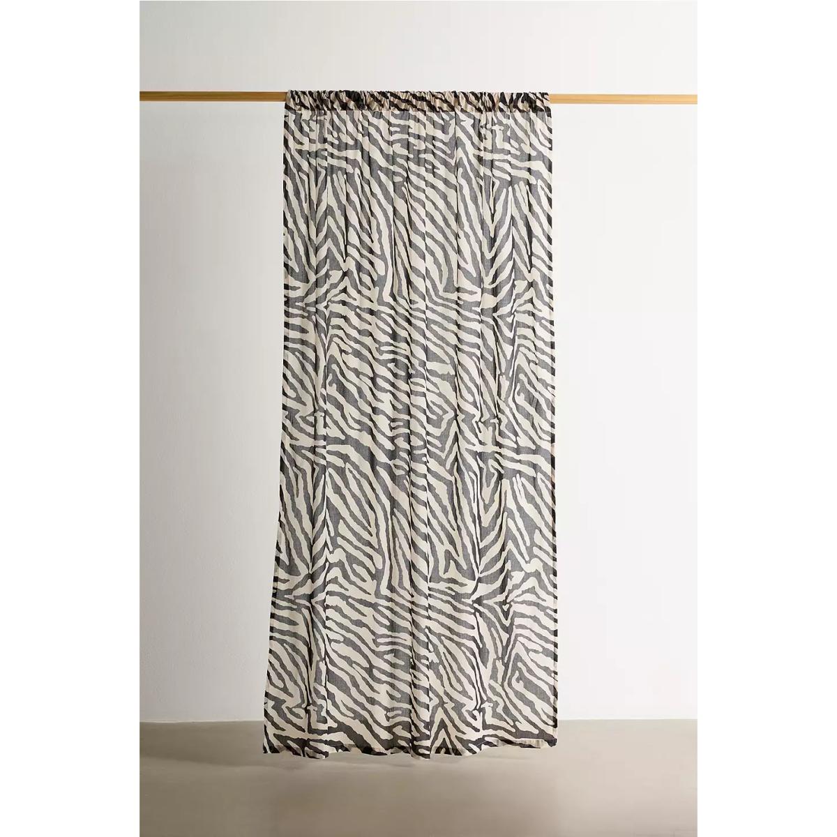 Bold zebra print curtain crafted from lightweight, slightly sheer cotton allowing filtered natural light while maintaining privacy. Features a rod pocket for easy hanging and a flowing design that will elevate any space. **Content + Care** \- 100% Cotton \- Machine wash **Size** \- 213cm x 132cm