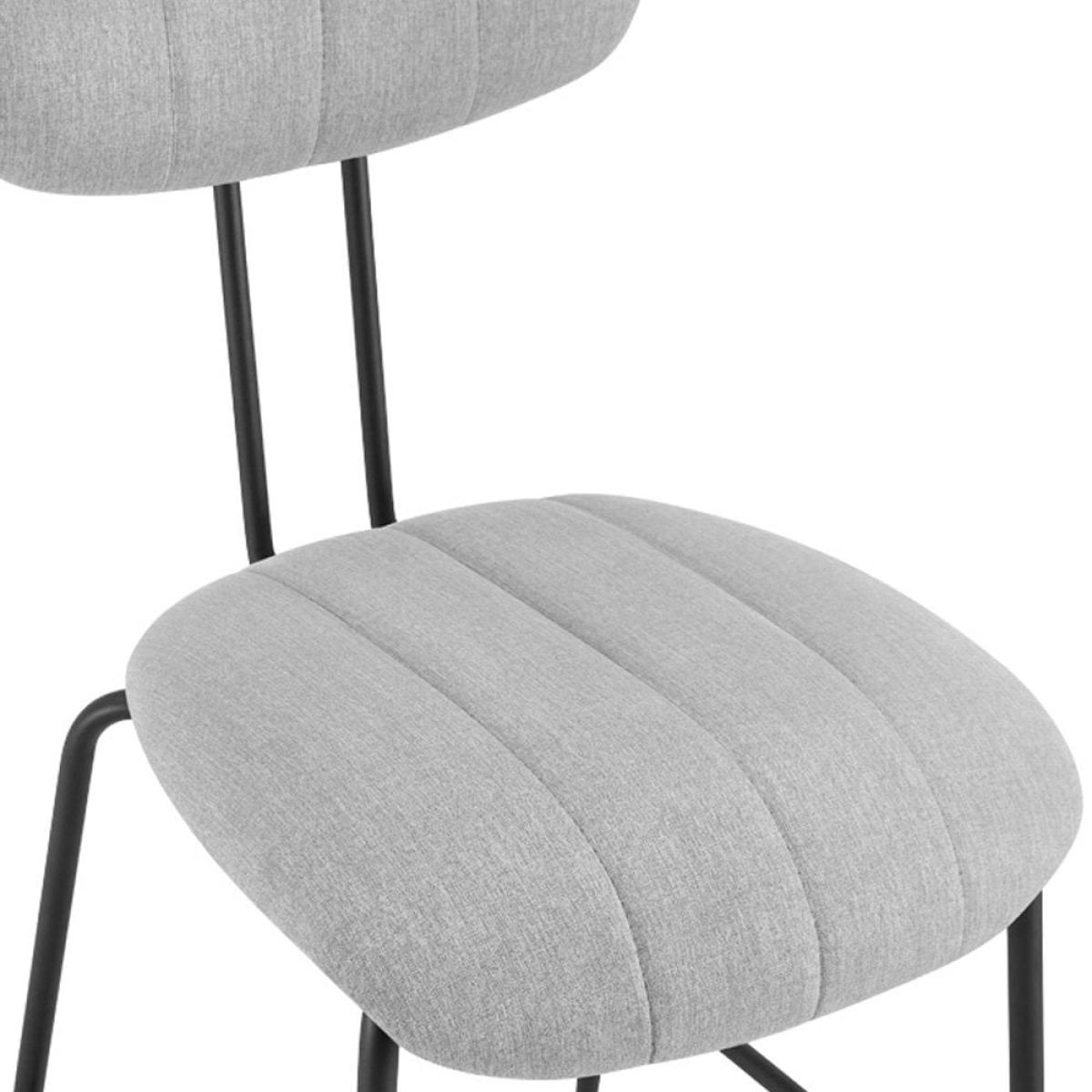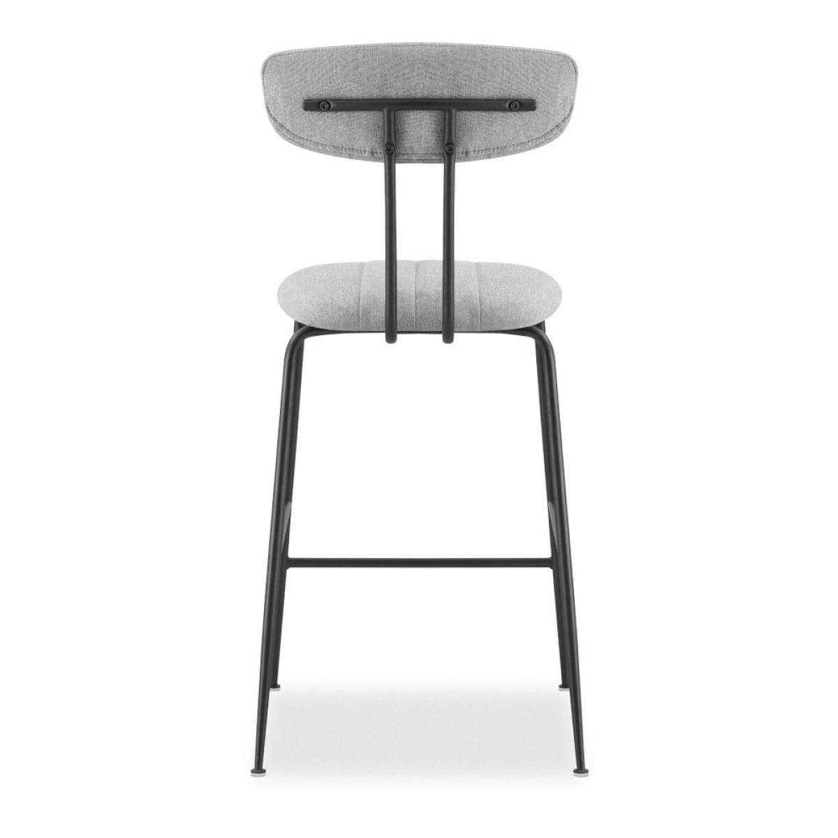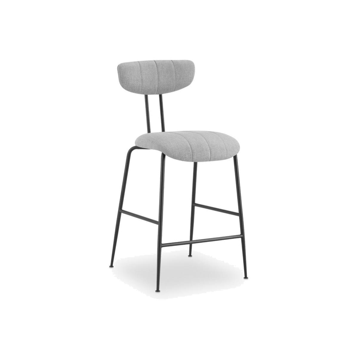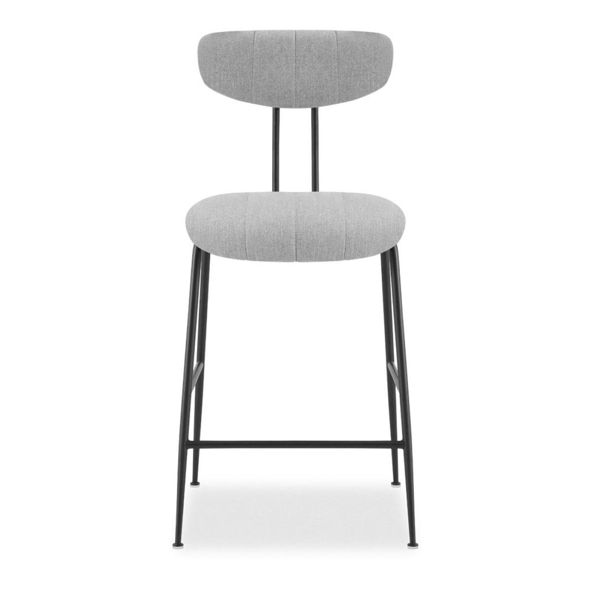 Our elegant Darcy bar stool in light grey displays an elegant Scandinavian style, with its slim metal legs, and a woven fabric upholstered seat. This trendy and stylish seat for your dining room, kitchen, bar, or restaurant, and comes in a wonderful selection of colours, and with black legs for the best match to your decor. The slimline backrest and the elegant frame with an elegant footrest give your room a chic vibe, has a vertically stitched backrest and seat. The comfortably padded seat is also available in a luxurious velvet upholstery for an art deco feel. Our Darcy bar stool is also available in a matching dining chair version and can be combined perfectly with Scandi and art deco pieces from Cult Furniture. View The Darcy Range