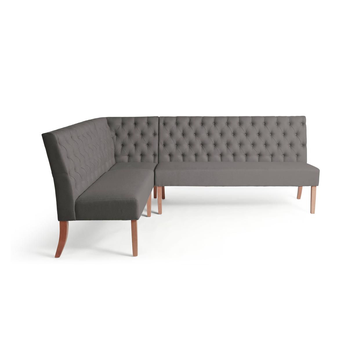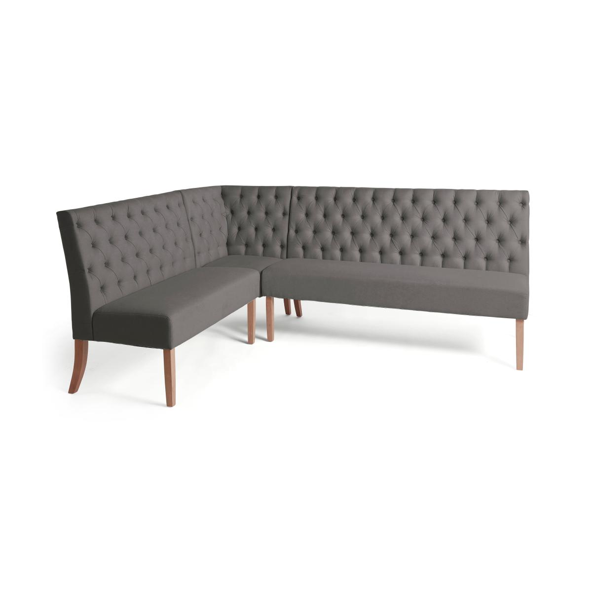 * Woven fabric upholstery* Pleated button details* Rubberwood legs* Left or Right configuration This elegant corner bench features a sophisticated flatweave upholstery available in light, neutral tones, effortlessly complementing any decor. The sturdy rubberwood legs provide excellent support and durability, ensuring long-lasting use. The backrest is adorned with a charming pleating and button design, adding a touch of classic elegance to your dining area.