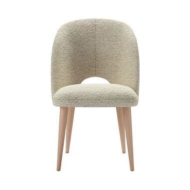 I love this chair for its cosy, textured boucle upholstery, which adds warmth and visual interest to any dining space. Its gentle curves and natural wood legs give it a Scandinavian-inspired look that feels both modern and inviting. It works particularly well in neutral or soft colour palettes, but can also make a statement mixed with bolder hues through accessories or tableware. Practical styling tips include pairing it with a sleek glass or wood table to highlight its beauty, and adding layered textures like a woven runner or soft cushions to create a balanced, comfortable dining setting. This chair is versatile enough to suit both contemporary and eclectic interiors, making it a stylish yet functional choice.
