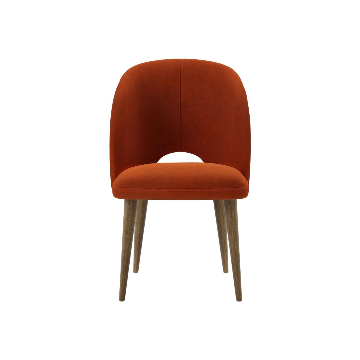 This chair is a smart choice for adding colour and texture to a dining space. I love the warm, earthy hue of the brick aquaclean velvet-it's versatile enough to complement both modern minimalism and more eclectic interiors. Its rounded silhouette brings a contemporary touch, while the velvet finish adds a hint of luxury without feeling formal. Practical styling tips include pairing it with a natural wood or matte metal table to enhance its mid-century vibe, and layering with cushions or throws for extra comfort and visual interest. This chair works especially well in cosy kitchens, open-plan dining areas, or even as an accent piece in a lounge corner. Its clean lines and rich upholstery make it both a stylish and functional addition to a variety of interiors.