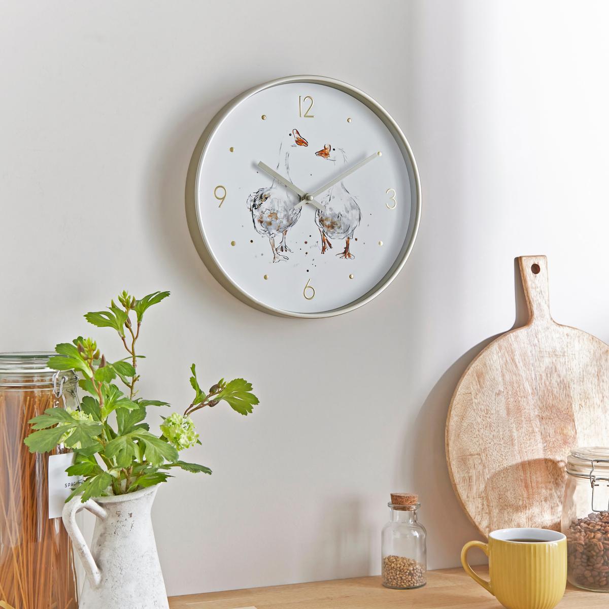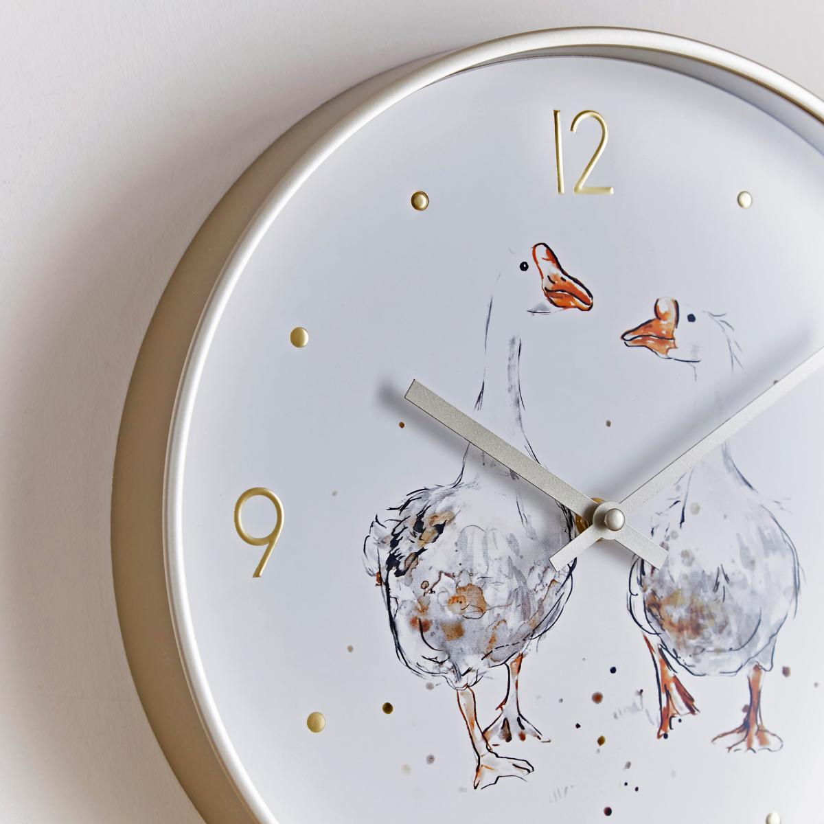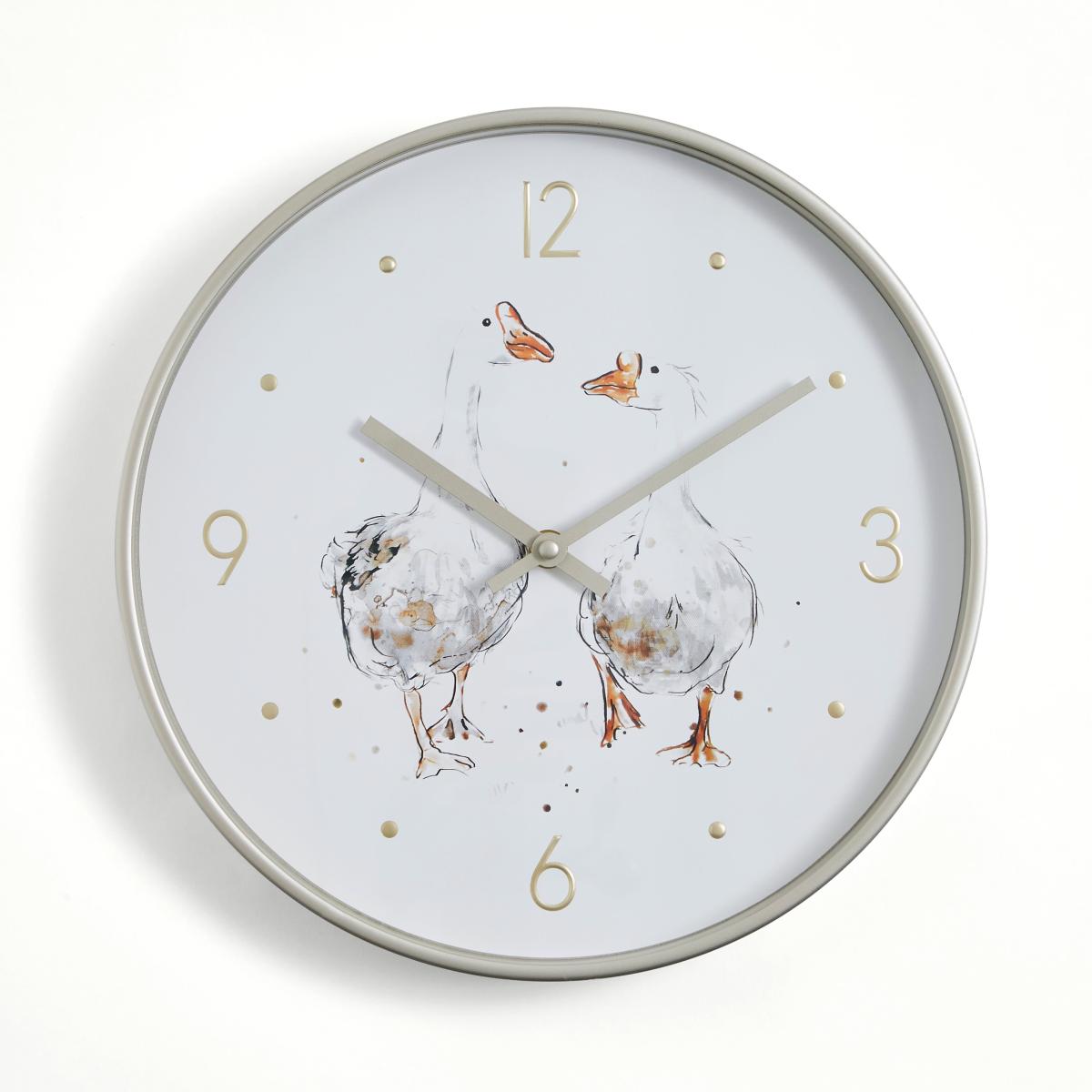 * Printed Duck Design* Gold-Effect Detailing* Analogue Display* Requires 1 x AA Battery (Not Included)The so-very-charming Darcy Duck Wall Clock is sure to add some fun and delight to your home. Featuring a sweet duck print, this clock boasts a gold-effect rim and an understated analogue display.