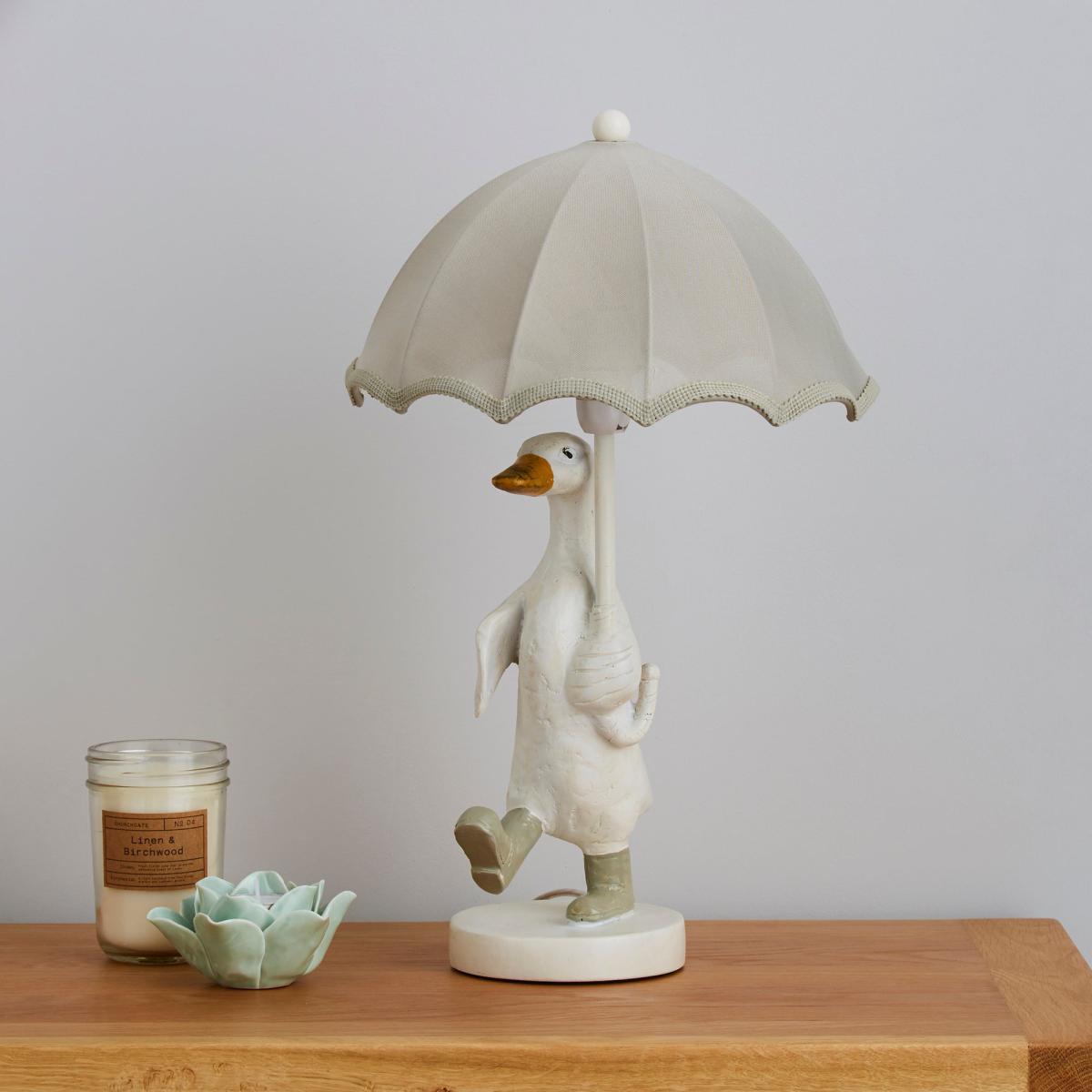 I love this quirky lamp for adding a playful touch to a variety of interiors, especially in children’s bedrooms or cosy, casual living spaces. The duck figure combined with the vintage-style umbrella shade creates a charming, whimsical look that’s both fun and functional. It works well styled alongside soft furnishings in pastel tones or neutral palettes to keep the vibe light and airy. Practical tips include placing it on a bedside table or bookshelf to introduce a statement piece without overcrowding, and pairing it with other playful accessories for a cohesive look. Its size and character make it perfect for adding personality to a space without overwhelming the décor.