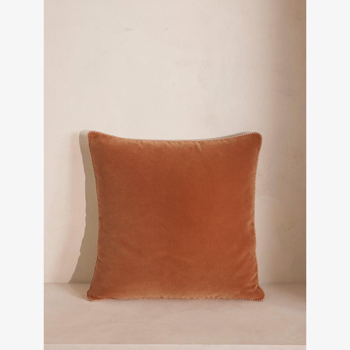 A typical style used in our London Houses, this square cushion has been crafted from cotton velvet with a contrasting linen reverse. Striped rope piping around the edge is finished in the UK, adding a subtle hint of pattern and texture.