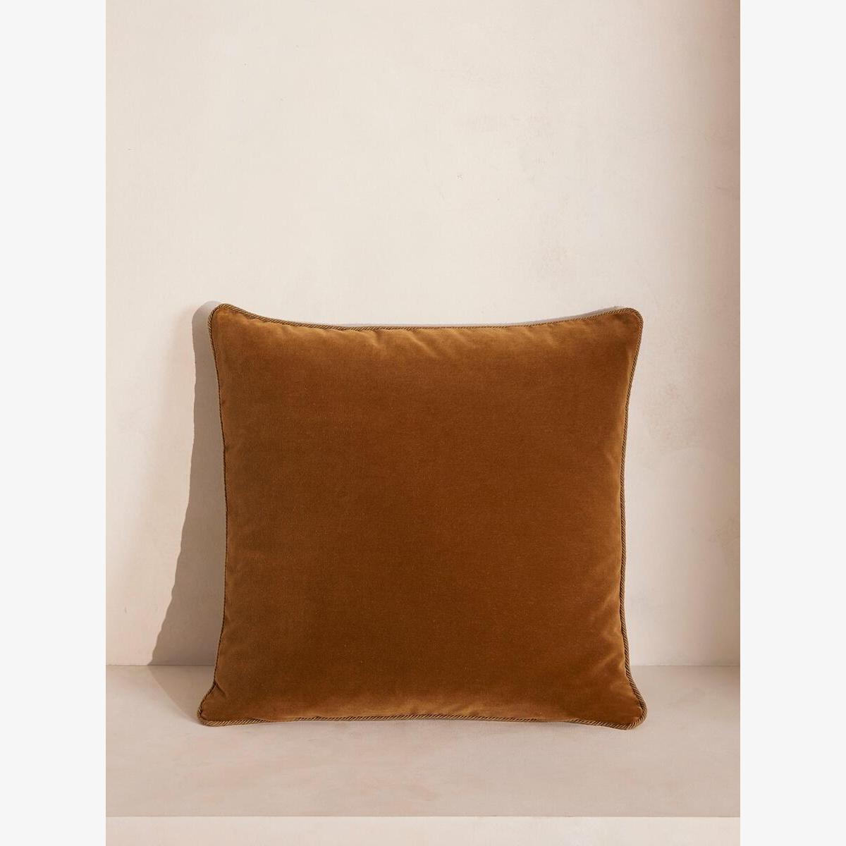 A typical style used in our London Houses, this square cushion has been crafted from cotton velvet with a contrasting linen reverse. Striped rope piping around the edge is finished in the UK, adding a subtle hint of pattern and texture.