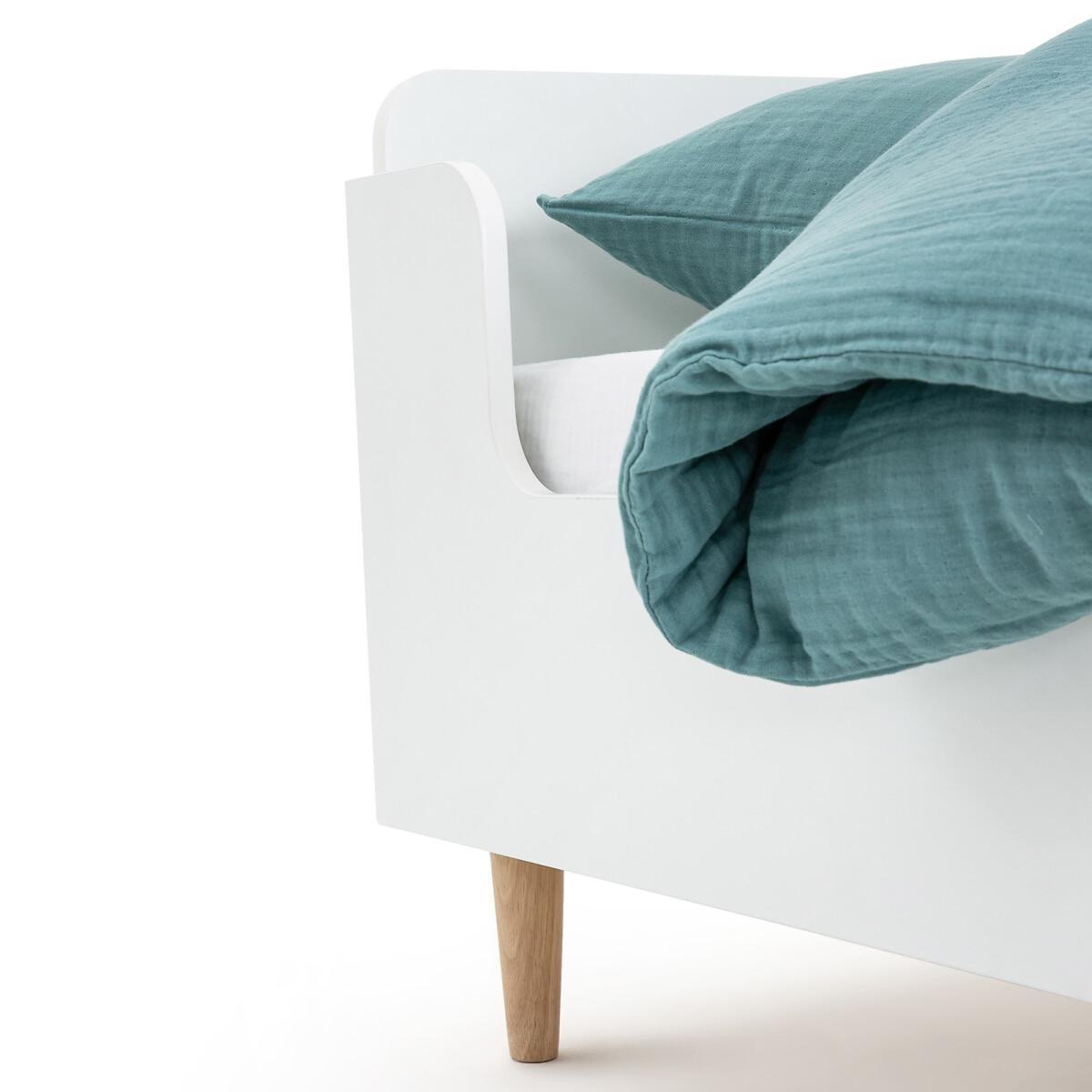 I love this little bed for its clean, contemporary look that easily fits into various kids’ rooms. Its simple white frame provides a versatile, neutral base, making it ideal for both colourful and minimalist interiors. It works well in bedrooms styled with Scandinavian aesthetics or modern schemes, especially when paired with natural wood accents or pastel tones. Practical styling tips include layering with cosy linens or patterned bedcovers to add personality, and pairing it with smart storage solutions underneath to maximise space. This bed’s understated design makes it adaptable, so it can grow with your child and suit different interior themes over time.