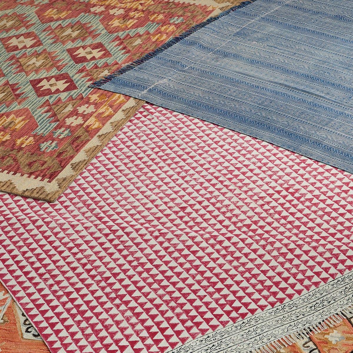Bring warmth to your scheme using our Large Darica Rug - a hand-tufted wool rug in soft, autumnal colours. Our take on the traditional Turkish floor covering features a bold pattern that combines a series of classic motifs; the yildiz (star), representing happiness; kocboynuzu (the ram's horn) that denotes power; and el (the hand), which offers protection from the evil eye. The wool used to make this rug has been vegetable dyed and treated with a herbal wash, before being left to dry naturally in the sun; the outcome of this process is a beautiful, antiqued finish. Darica Rug - Multi