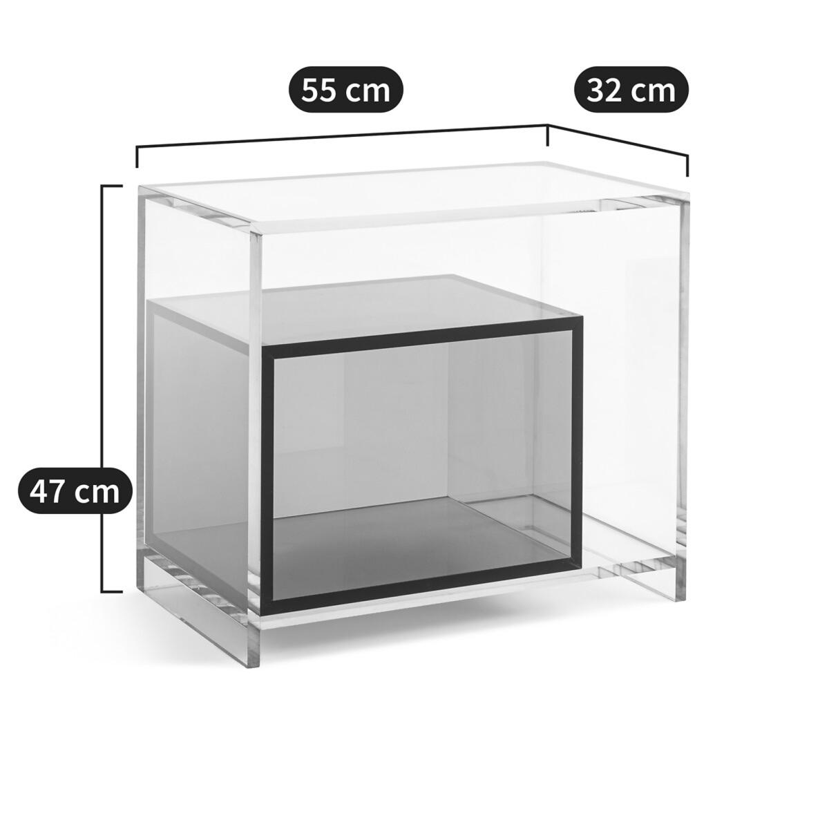 I love the Dario acrylic glass lamp table for its sleek, contemporary aesthetic that instantly elevates any bedroom. Its transparent design makes it a versatile piece that works well in both minimalist and modern interiors, creating a sense of openness and space. To style it effectively, consider pairing it with bold lamps or colourful accessories inside the green cube to add pops of colour, or keep the decor minimal with monochrome or metallic accents for a more sophisticated look. It’s a practical addition for those who like to keep surfaces clear, yet want to introduce a touch of contemporary edge to their room.