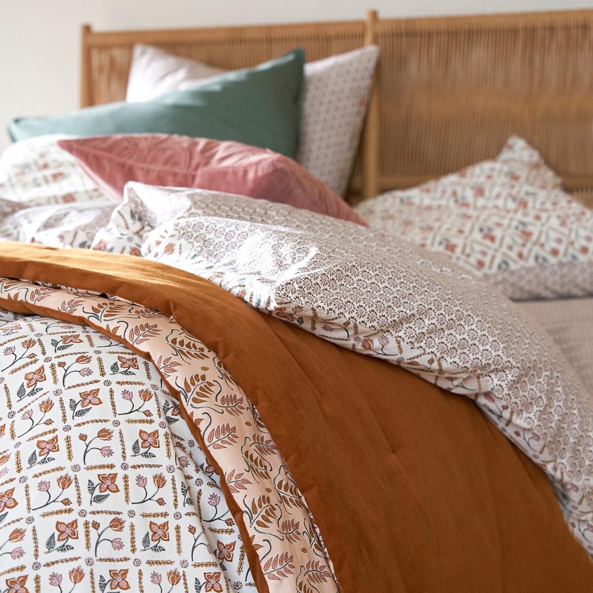 What we like about the Dario quilt is the combination of velvet and washed cotton. This bedspread is reversible, so you can change your style as you wish, printed or plain. This beautiful creation has a soft touch that will blend in with any interior style.