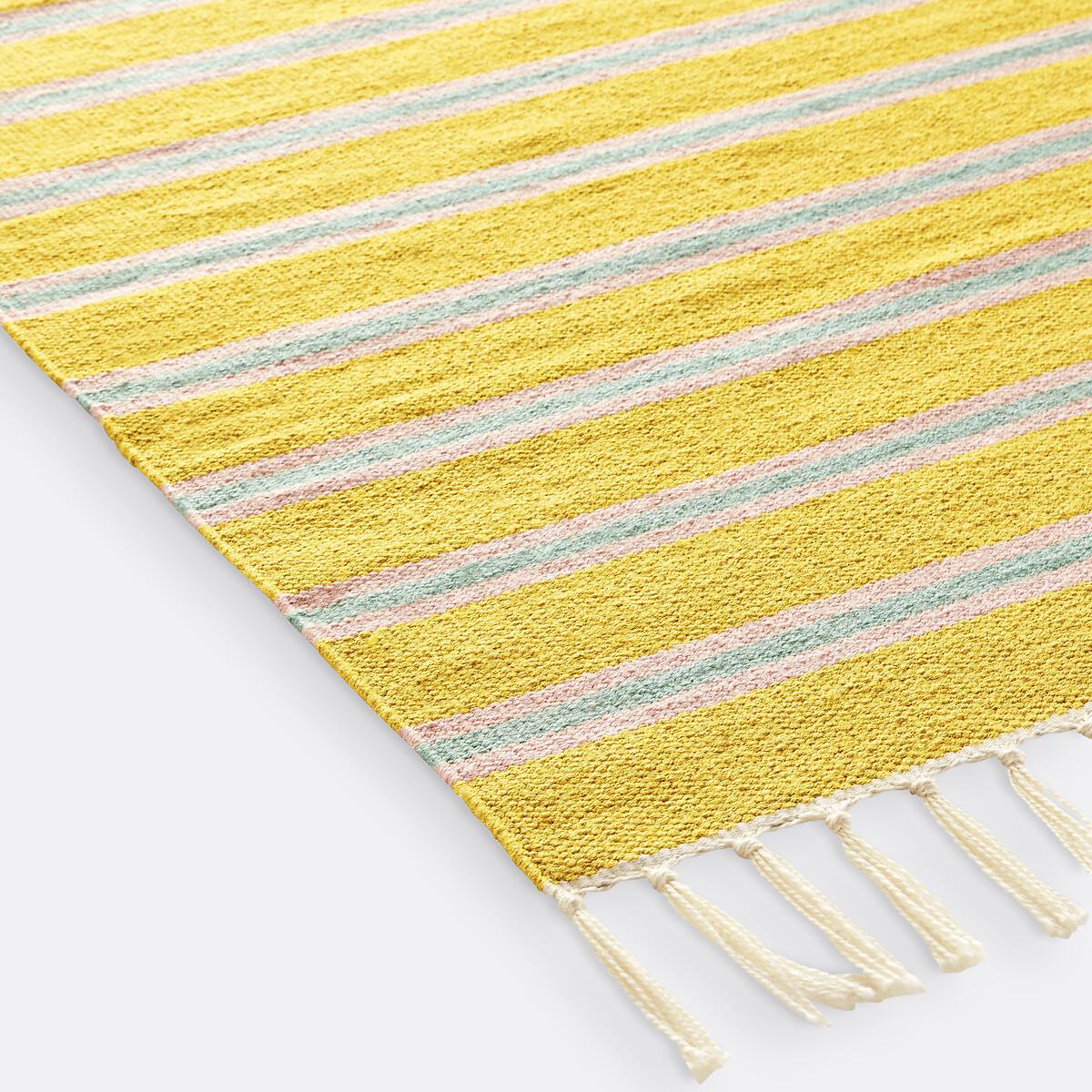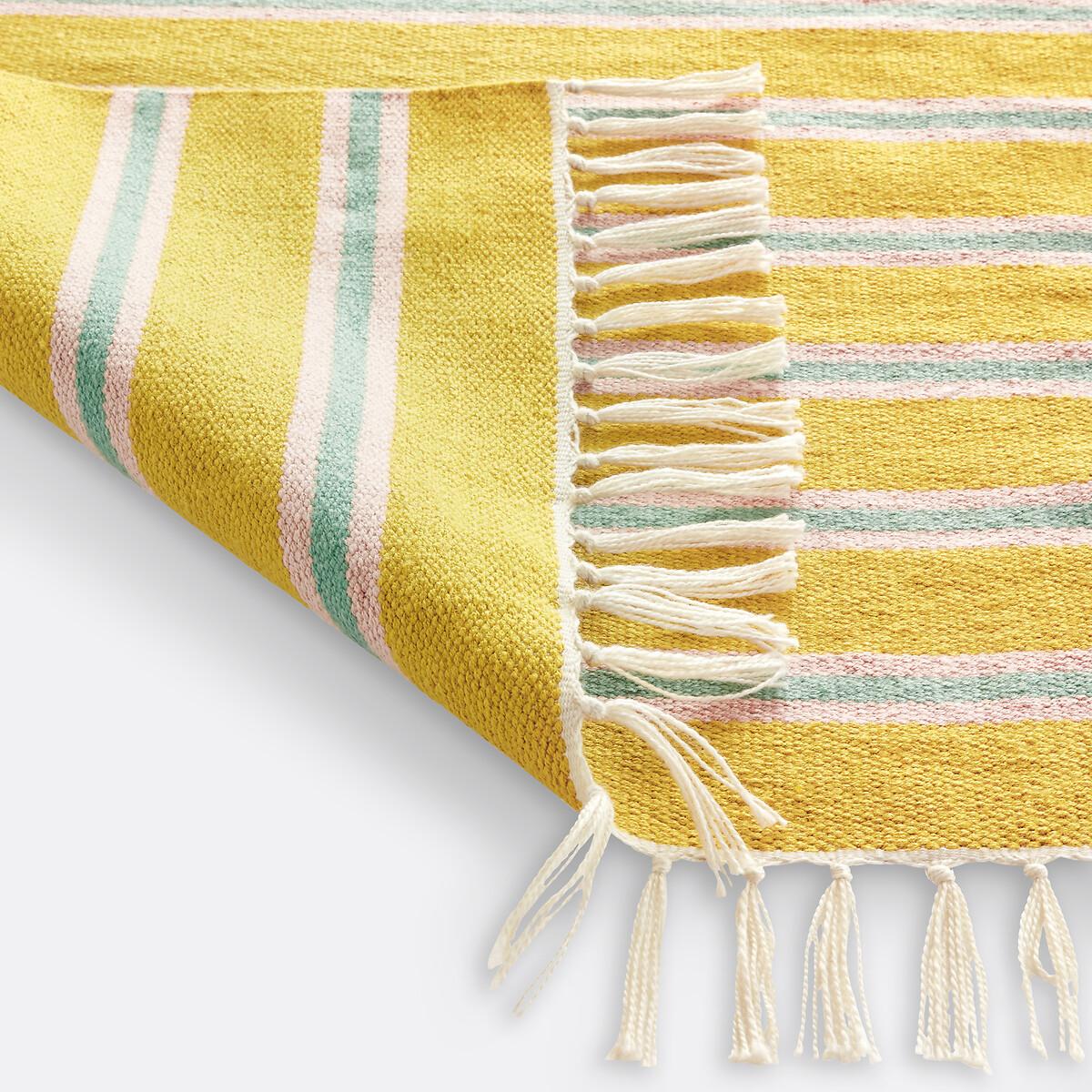 The carpet is undoubtedly the element that contributes the most to the atmosphere of a room. With its stripes worked in very modern tones, Darius brings its bohemian chic touch inside and outside the house. Its rectangular format adapts easily to all rooms and highlights a sofa or a bed. An on-trend and versatile design!A design exclusive to La Redoute Interiors. Product Details • 100% polyester • 1300g/m² • Fringed edging • Hand crafted • Indoor and outdoor. Care Advice • Vacuum regularly • To remove a stain, immediately dab the carpet with an absorbent tissue or damp cloth if necessary. For larger and deeper stains, seek professional service. Sizes • Width 120 x Length 170cm • Width 160 x Length 230cm • Width 200 x Length 290cm • Thickness: 0.5cmDelivery:. Available for home delivery.