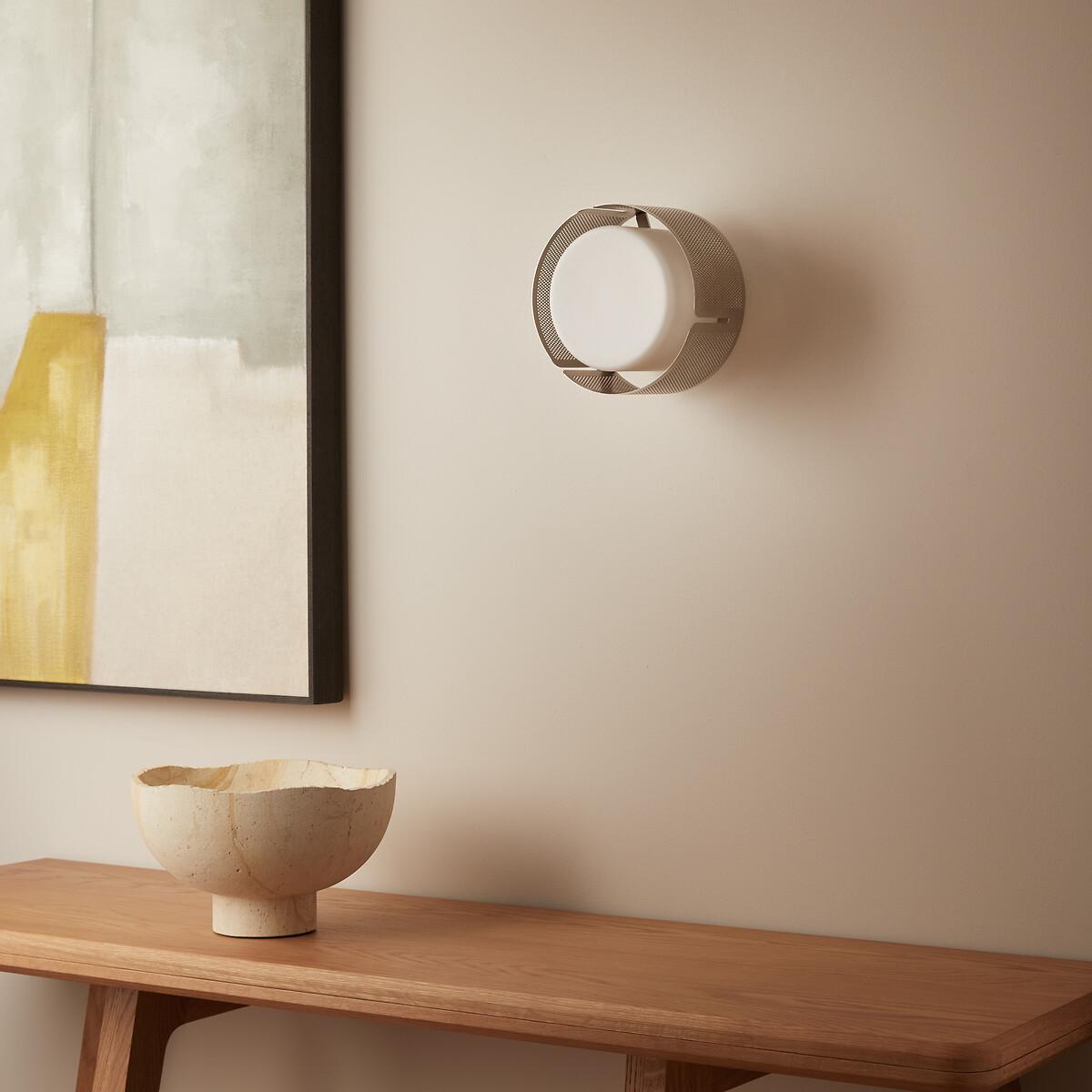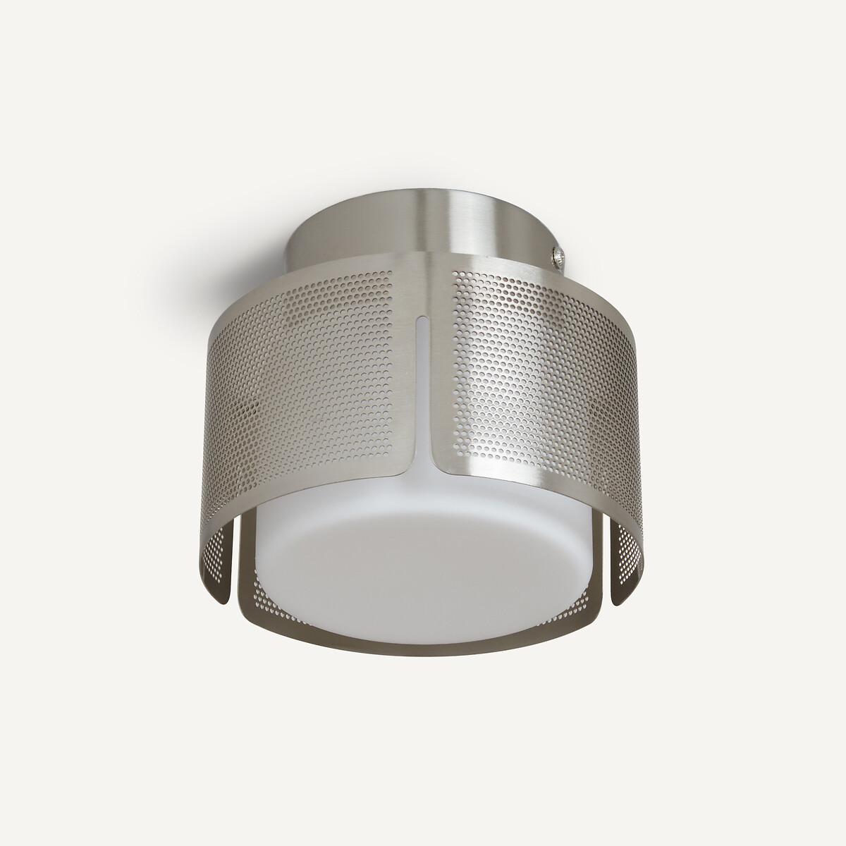 In opaque opaline and satin nickel metal, the Darja wall or ceiling light is a modern and elegant light fixture.. The perforated metal lampshade diffuses subtle lighting effects on the floor and walls. Versatile, Darja can be installed as a ceiling light in a hall, an entrance or as a wall light in a corridor or the corner of a room. A functional and creative design with the AMPM signature. Product Details • Lampshade in perforated iron plates with satin nickel finish • Opaline glass globe • Socket for G9 5W max bulb (not supplied)Dimensions. Overall • Diameter: 18.5cm • Height: 17cm. Globe • Diameter: 13.5cm • Height: 10cm. Base • Diameter: 12cm • Height: 5cm. Dimensions and weight of parcel1 parcel • L39 x H19 x D28cm, 1.7kg
