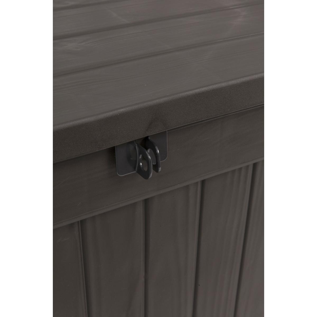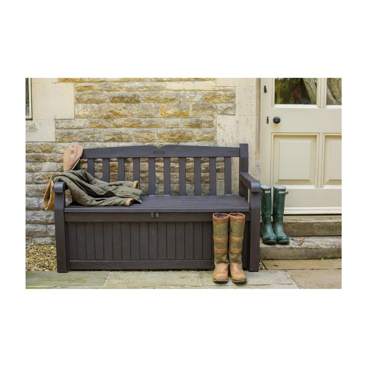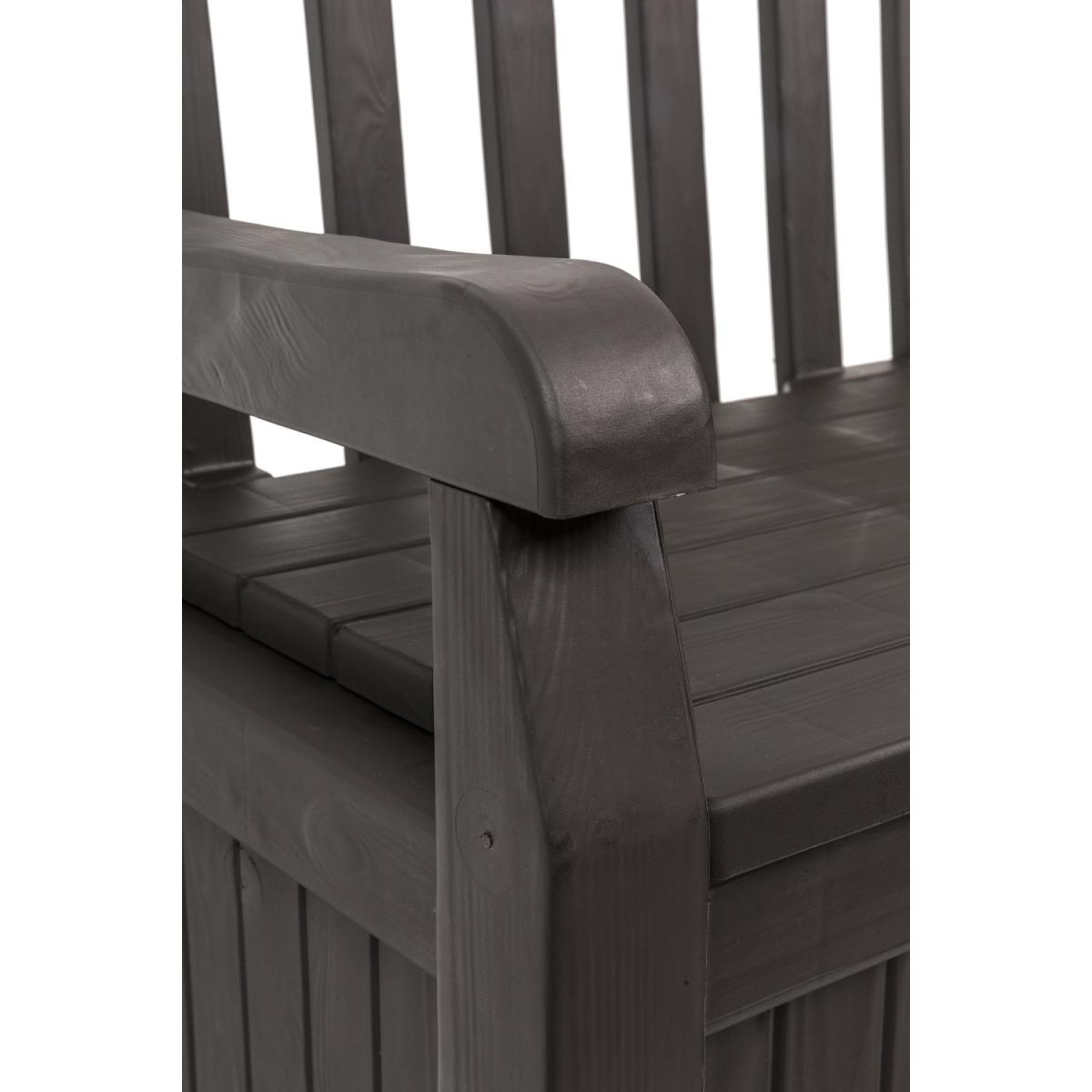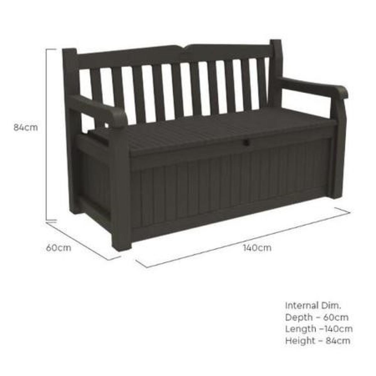 A sleek mix of furniture and storage. This garden bench is an attractive piece of furniture that seats 2 adults and doubles as a lockable deck box.