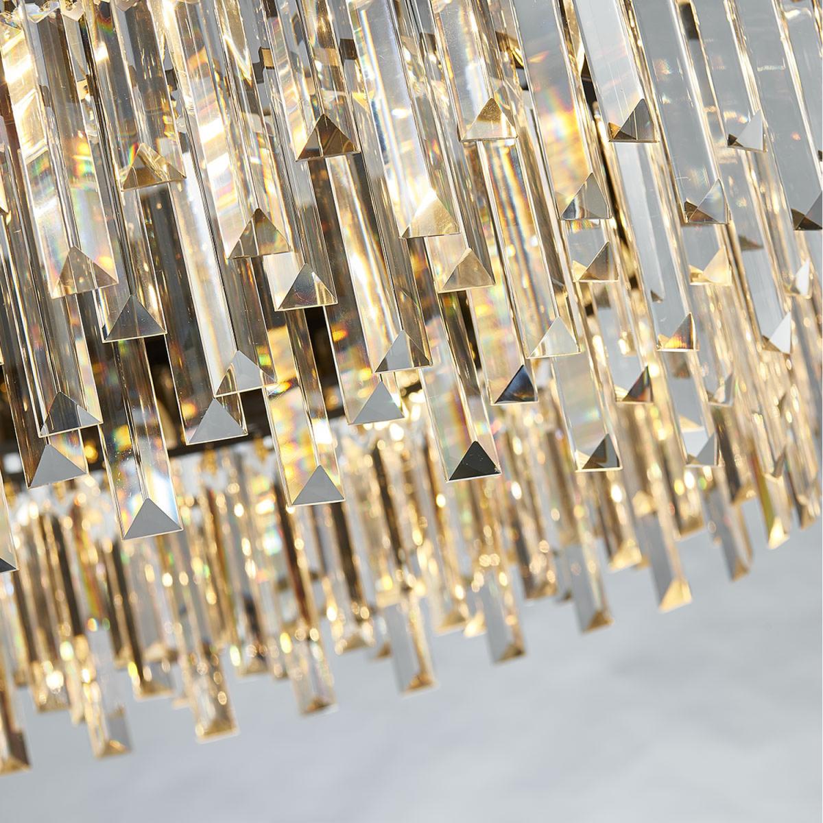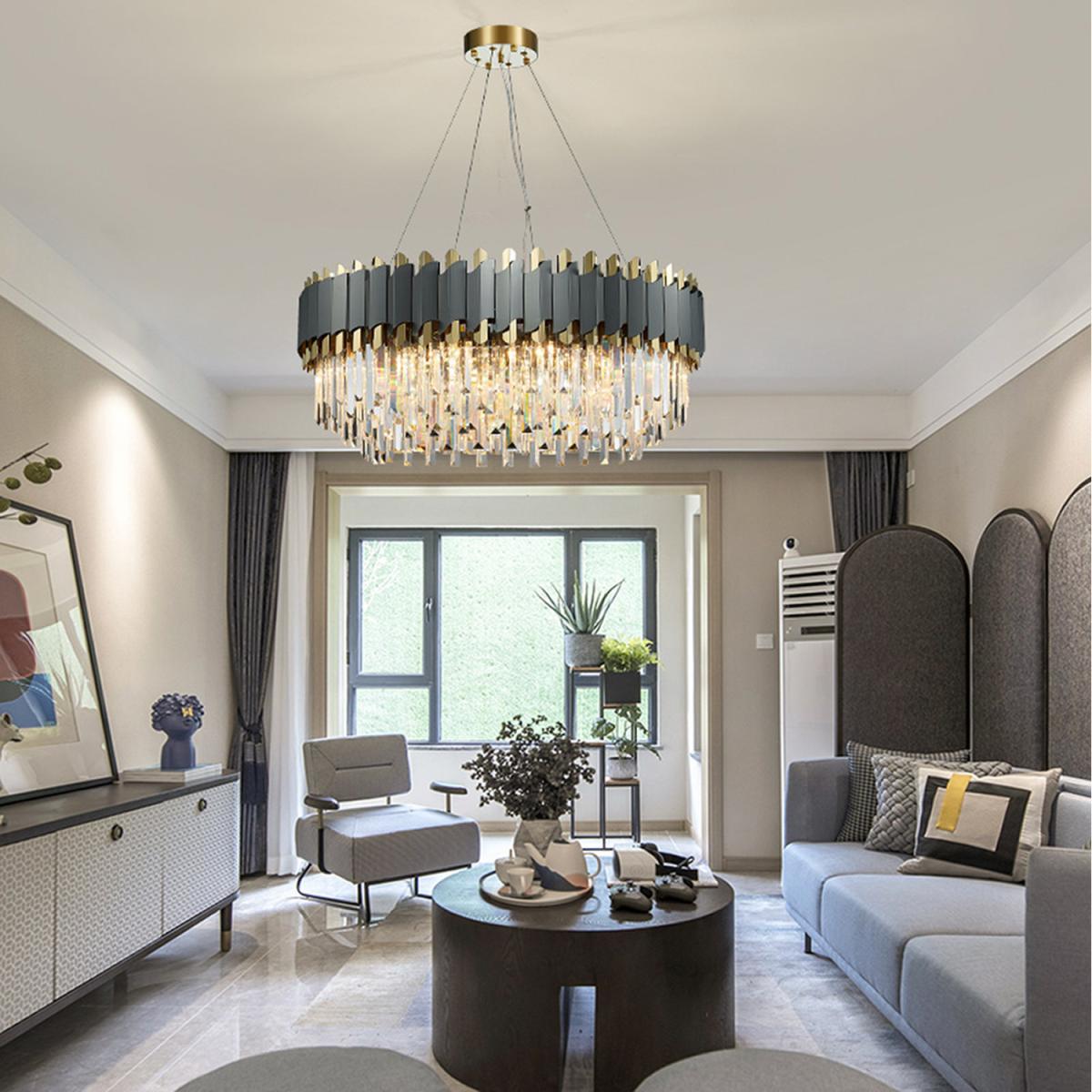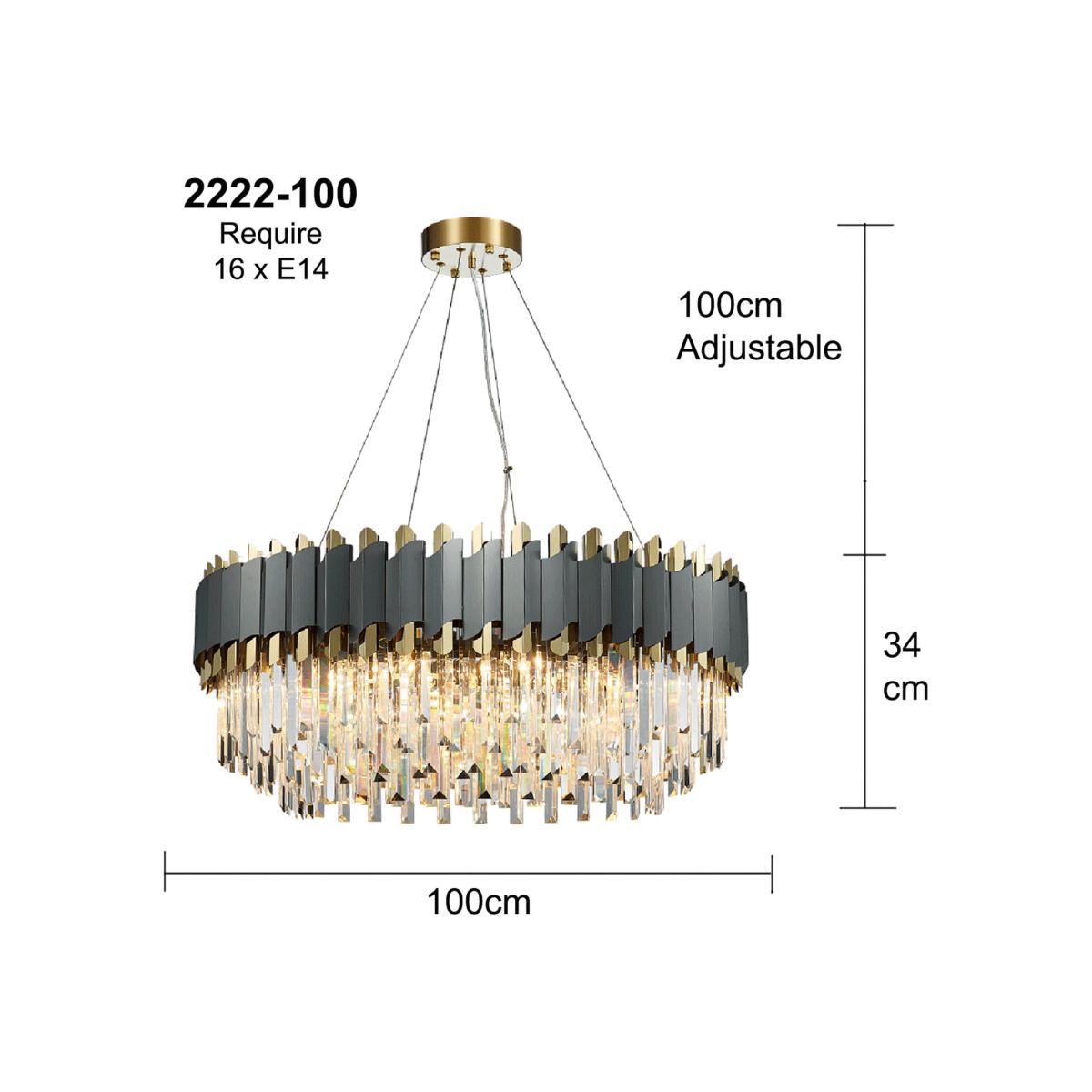 8 Bulbs Rectangle Dinning Light 100x34 cm. Style: crystal, modern/contemporary Suggested space size: up to 15-20 sq.m. Number of lights: E14 x 8. Finish: Electroplated. Materials: K9 Crystal and Metal Dimmable with E14 Dimmable Bulbs. Lighting direction: ambient light. Power:Max 40W x 8 E14 Net weight: 20.40 kg. Body Length: 100 cm. Body Width: 35 cm. Body Height: 34 cm. Chain Length: 100 cm (Adjustable)8 Bulbs Round Diameter: 60 cm. Style: crystal, modern/contemporary Suggested space size: up to 15-20 sq.m. Number of lights: E14 x 8. Finish: Electroplated. Materials: K9 Crystal (High Quality Not Acrylic! Check other sellers) and Metal Dimmable with E14 Dimmable Bulbs. Lighting direction: ambient light. Power:Max 40W x 8 E14 Net weight: 16.50 kg. Body Width: 60 cm. Body Height: 34 cm. Chain Length: 50 cm (Adjustable) 12 Bulbs Round Diameter: 80cm. Style: crystal, modern/contemporary Suggested space size: up to 20-25 sq.m. Number of lights: E14 x 12. Finish: Electroplated. Materials: K9 Crystal (High Quality Not Acrylic! Check other sellers) and Metal Dimmable with E14 Dimmable Bulbs. Lighting direction: ambient light. Power:Max 40W x 12 E14 (not included)Net weight: 20.60 kg. Width: 80 cm. Body Height: 34 cm. Chain Length: 50 cm (Adjustable)16 Bulbs Round Diameter: 100cm. Style: crystal, modern/contemporary Suggested space size: up to 25-30 sq.m. Number of lights: E14 x 16. Finish: Electroplated. Materials: K9 Crystal (High Quality Not Acrylic! Check other sellers) and Metal Dimmable with E14 Dimmable Bulbs. Lighting direction: ambient light. Power:Max 40W x 16 E14 (not included)Net weight: 26.50 kg. Width: 100 cm. Body Height: 34 cm. Chain Length: 50 cm (Adjustable)