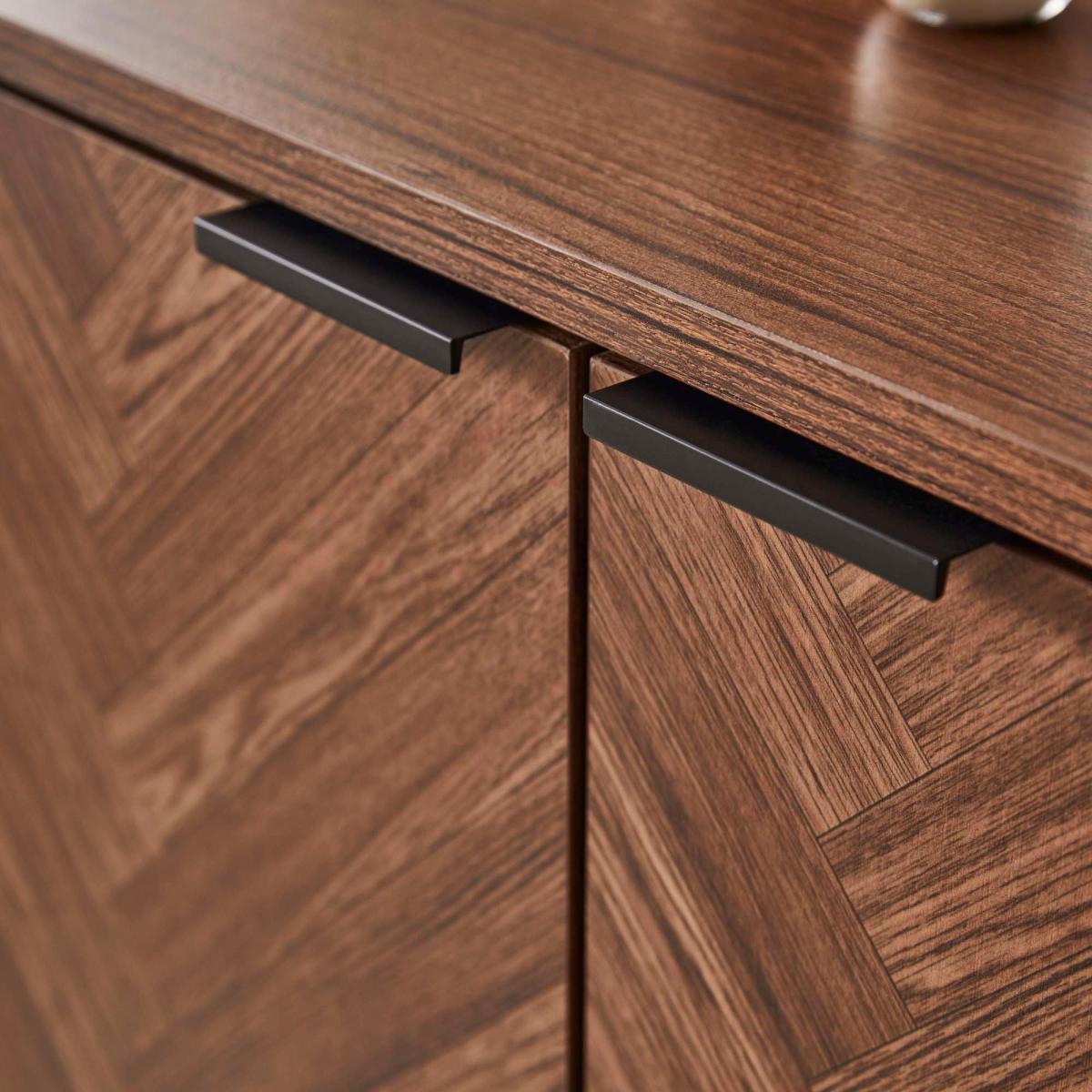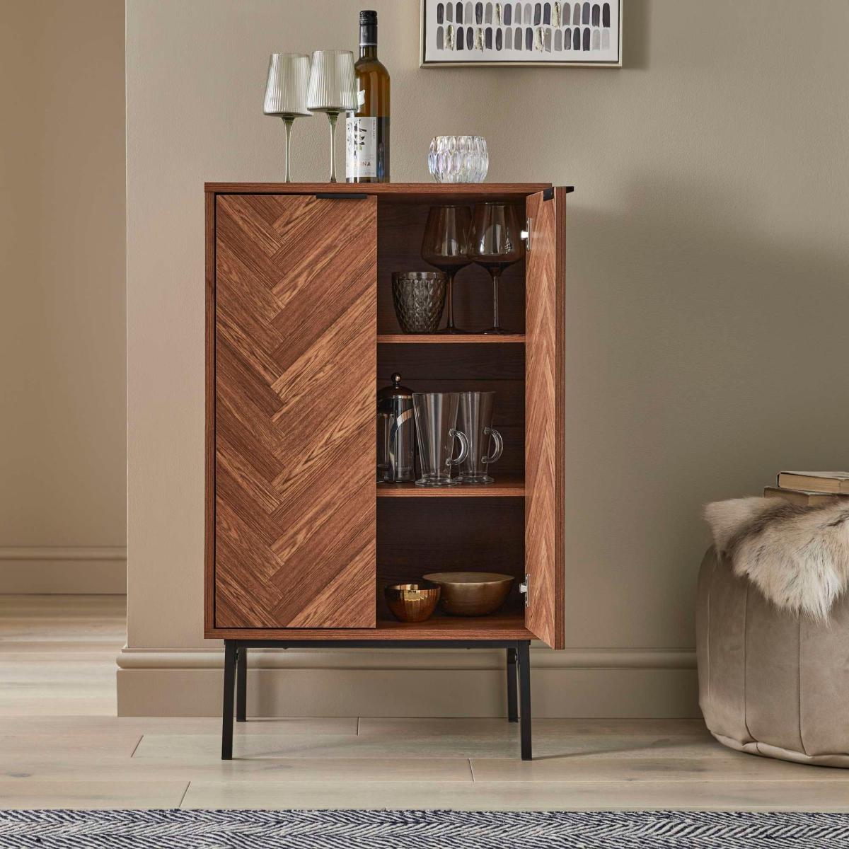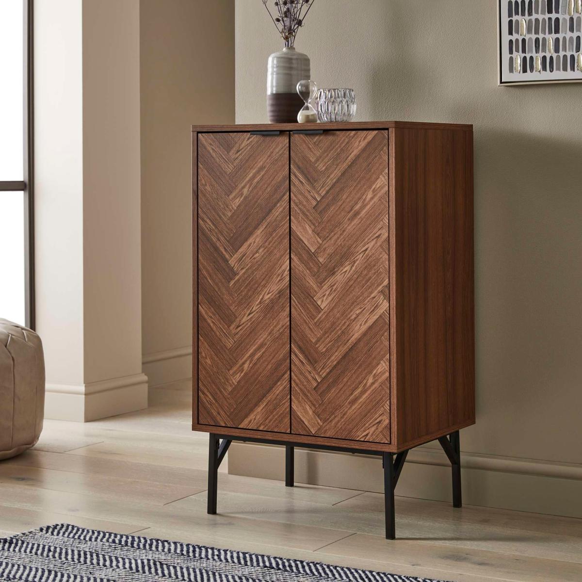 I really like the dark chevron shoe cupboard for its sleek, modern look and functional design. The chevron pattern adds a subtle touch of visual interest without overwhelming the space, making it a versatile piece that works well in both contemporary and mid-century styled interiors. Its compact size makes it an excellent choice for smaller hallways or entryways, keeping shoes organised and out of sight. For styling tips, consider positioning it alongside a cosy bench or a mirror to maximise the space and create a welcoming entry zone. Pair it with a few decorative accessories like a tray for keys or a small plant on top to personalise the area and add a bit of character.
