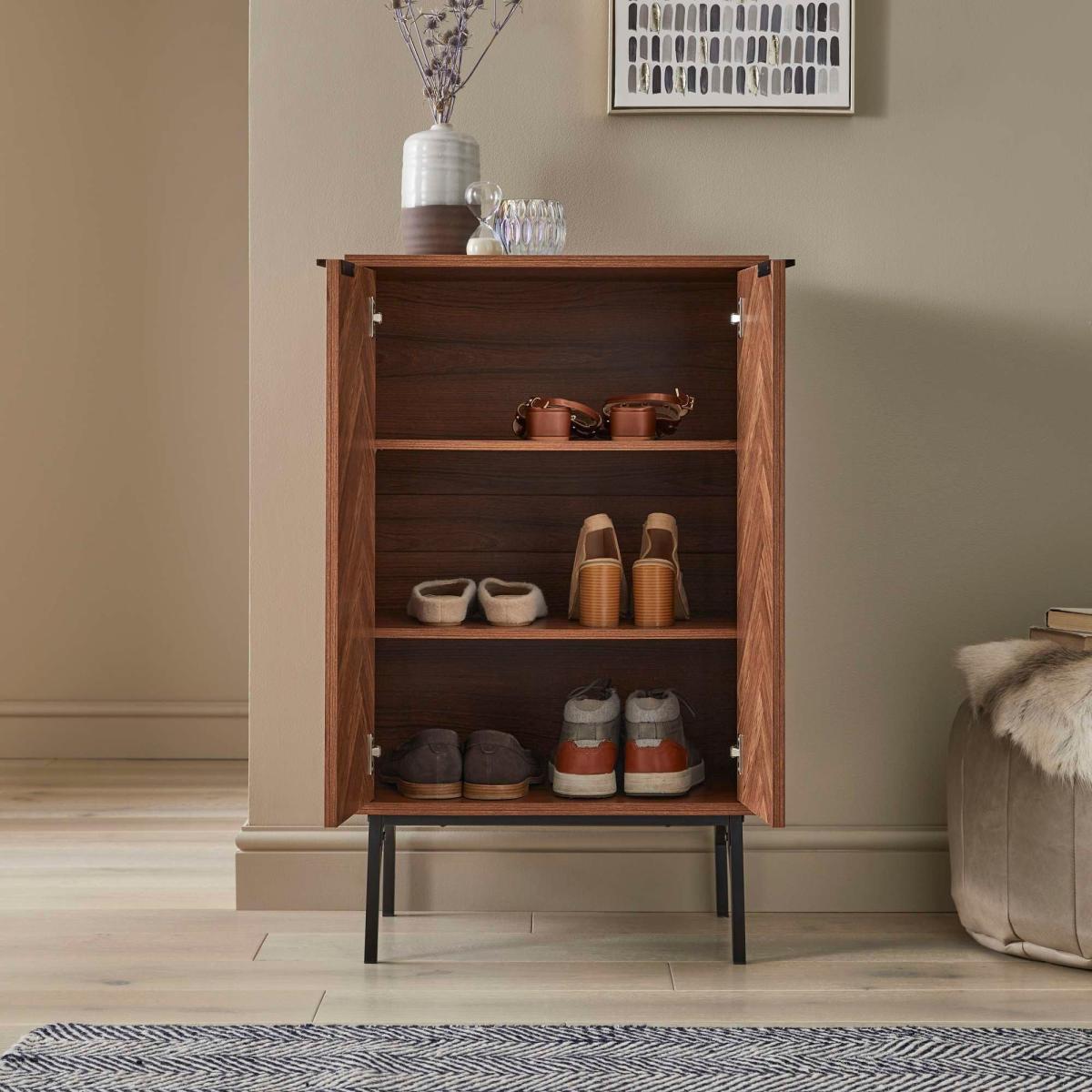 Dark Chevron 2 Door Shoe Storage Brown