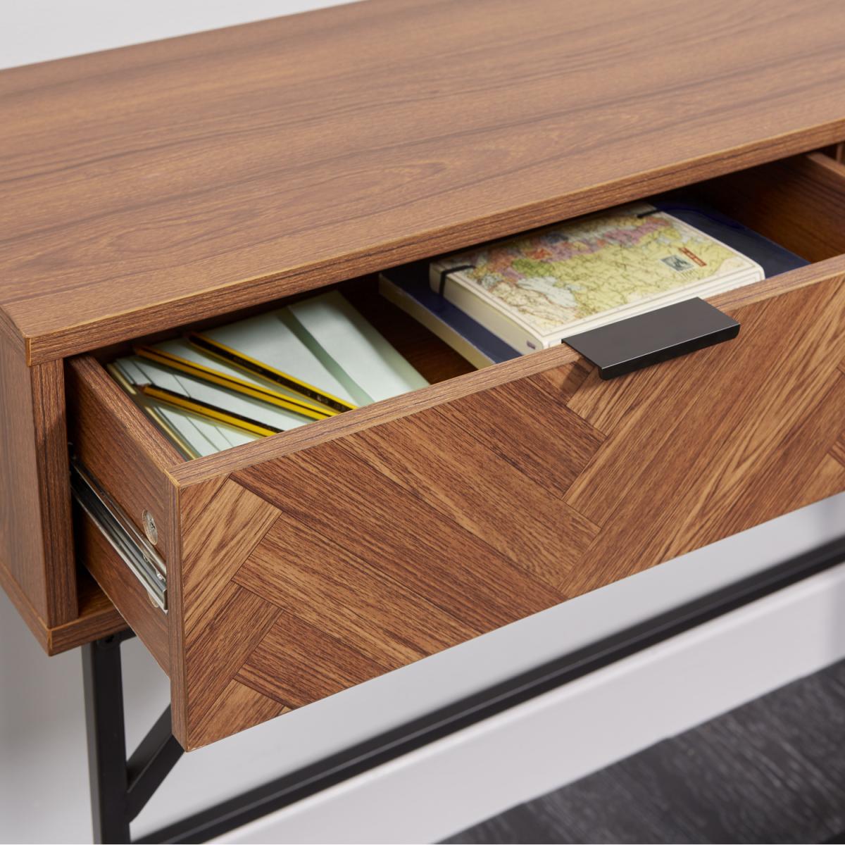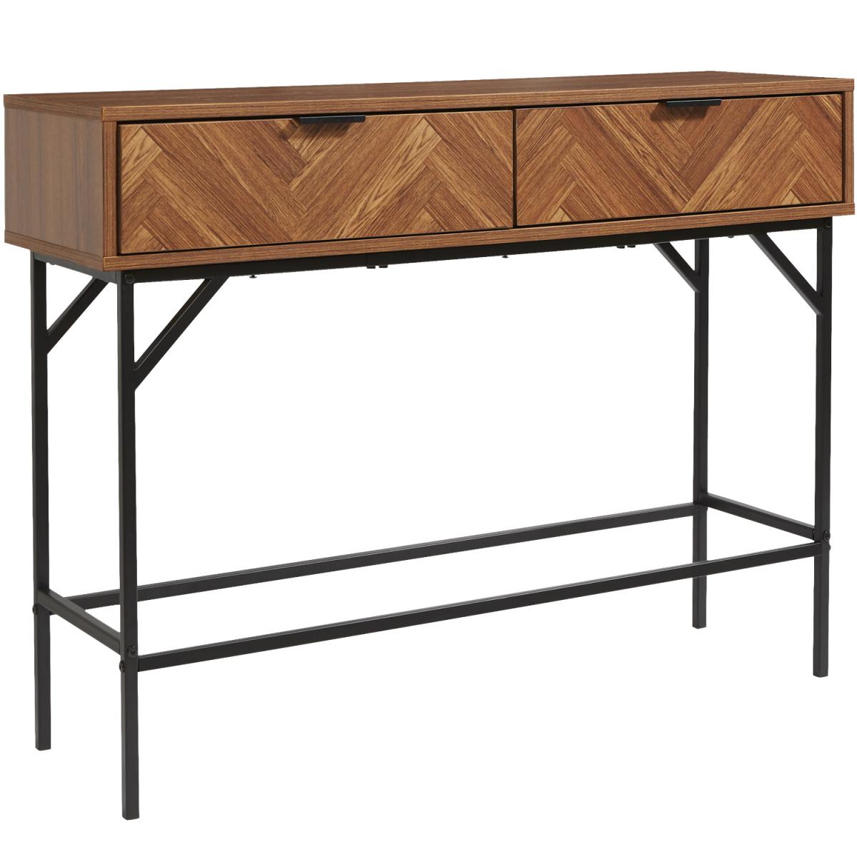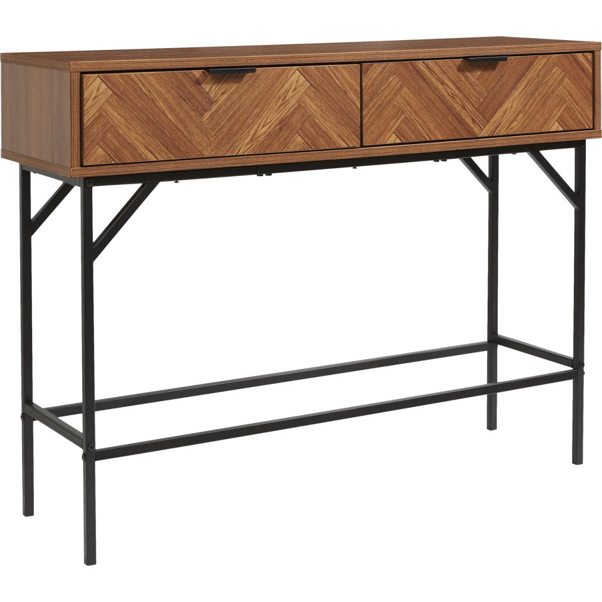 Dark Chevron 2 Drawer Console Table with Metal Legs - Brown