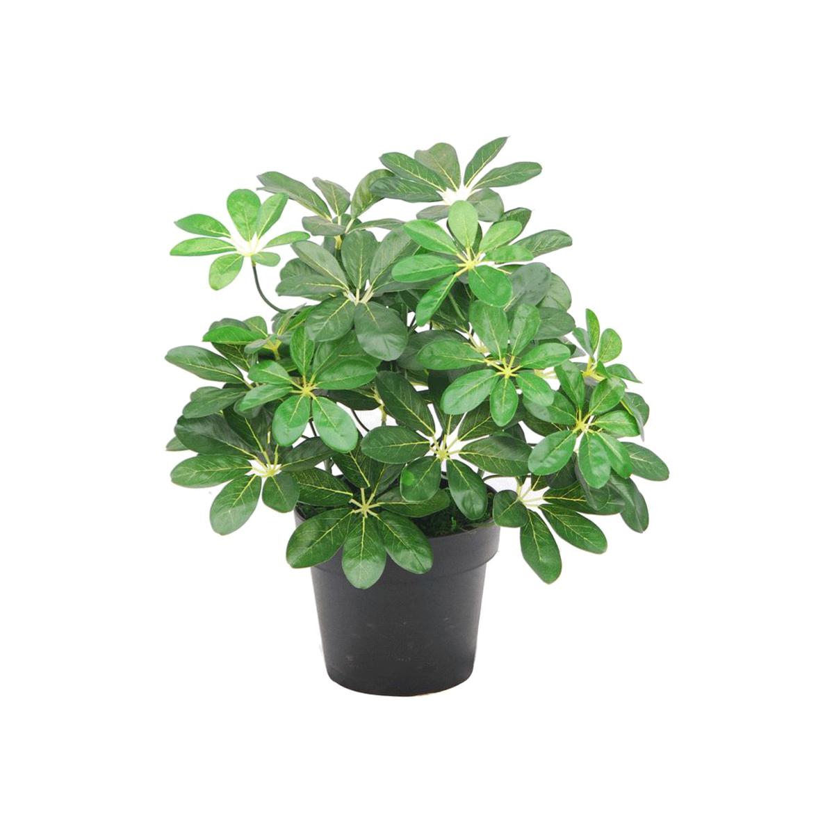 These stunning rich green plants also known as 'Dwarf Umbrella Trees' are native to Taiwan and part of the 'Araliaceae' family of plants. Our artificial versions are totally child and pet safe (unlike the real plants which are actually poisonous). These look brilliant just about anywhere in your home but look particularly nice in conservatories or windowsills. These are highly realistic artificial plants. This artificial plant stands when arranged as shown in the pictures. This particular leaf colour is a replica of the variation known as 'Dwarf Schefflera Arboricola'. We have other colour versions of the same plant available. It has 450 leaves (approx) Stems are fully wired so this plant is highly customisable to fit your space perfectly. It is highly realistic with botanically accurate foliage. It comes potted in a plain plastic pot and is ready to display.