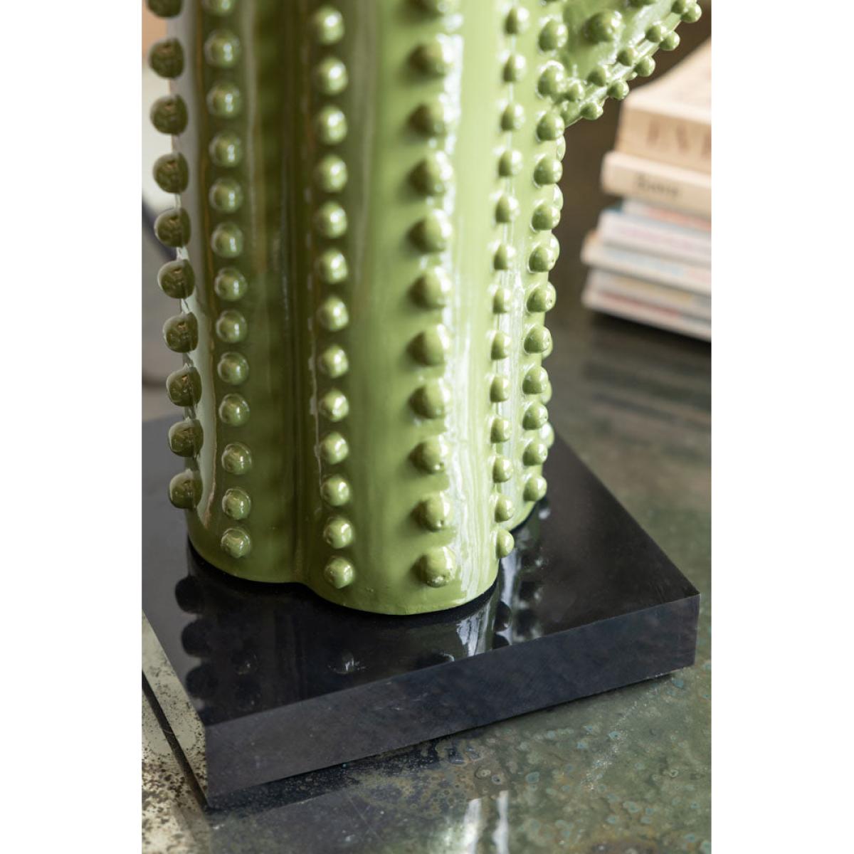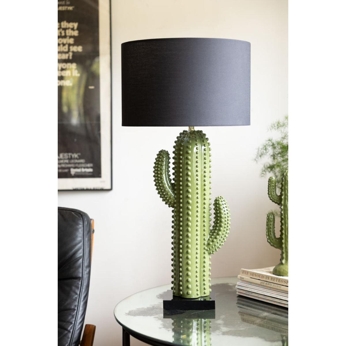Say hello to the Dark Green Cactus Table Lamp – the unusual table lamp your quirky homeware and home accessories have been dreaming of. This beauty is pure holiday energy in lamp form. The base? A striking cactus in deep glossy green. The Shade? A rich, dark green classic that ties the whole look together like a perfect sunset cocktail. It’s bold, it’s fun, and it radiates that carefree, exotic vibe that makes you feel like you’re sipping margaritas somewhere far, far away. Pop it on your bedside table or side table and watch how it transforms your space and lighting in the living room – suddenly, everything feels more joyful, more stylish, and more alive, like a little slice of sunshine with a plug. - Dark Green Cactus Table Lamp - Measures: W35cm x D35cm x H75.5cm - Materials: Resin - Handle with care and wipe clean with a soft dry cloth only. Ensure the light is unplugged or switched off, and allowed to cool before cleaning.