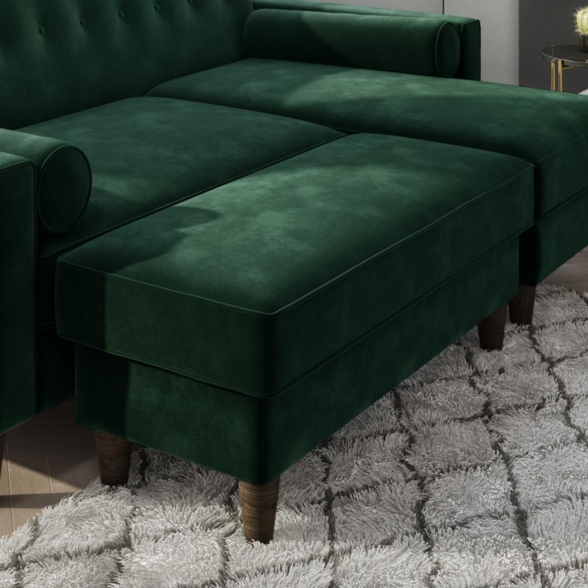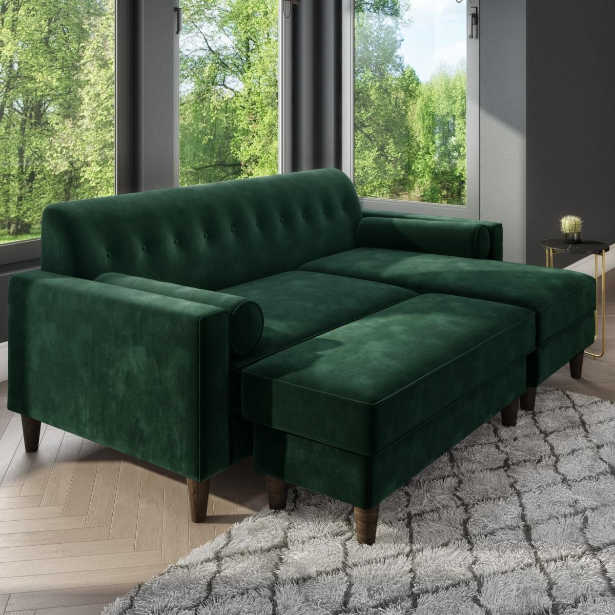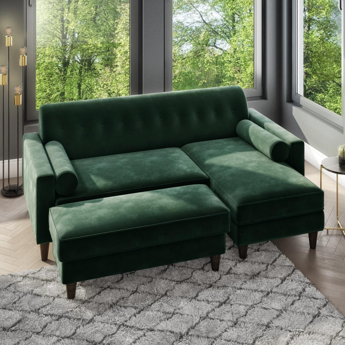 Adorn your living space with this rich velvet footstool. The perfect match for our Idris corner sofa. Use as a bench to offer some extra seating for your guests, or create a stunning centrepiece in your living room with a stack of books and a candle on a decorative tray. The rich dark green velvet will look stunning against any interior backdrop. Just attach the legs and you're ready to relax in style with your useful footstool.