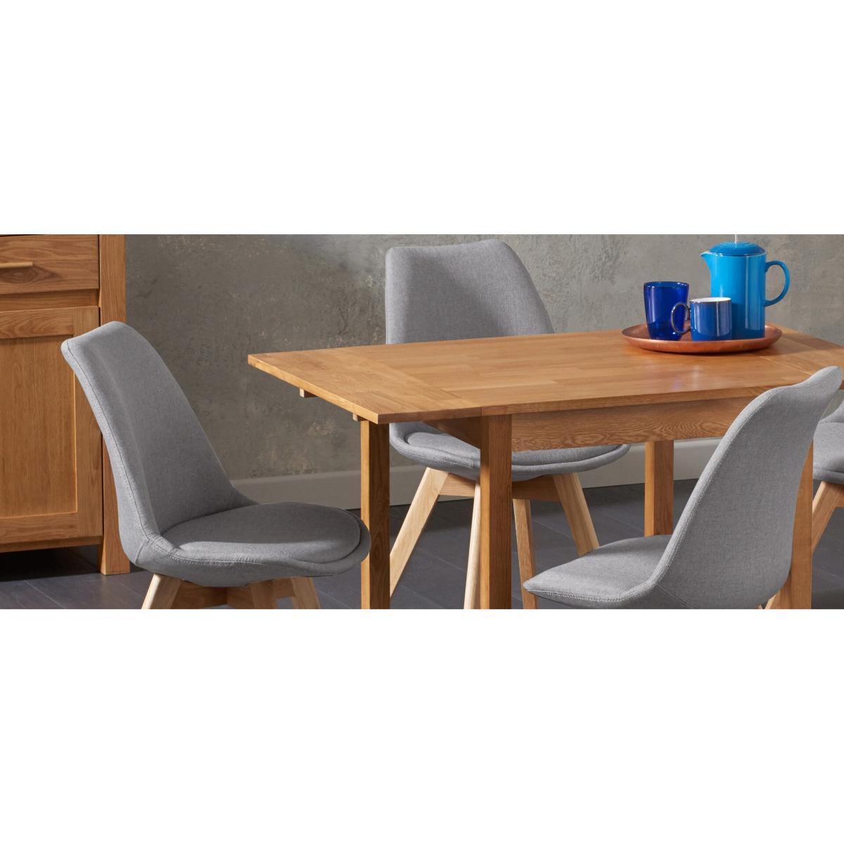 Orson Fabric Dining Chairs feature comfortable fabric and hardwood legs.