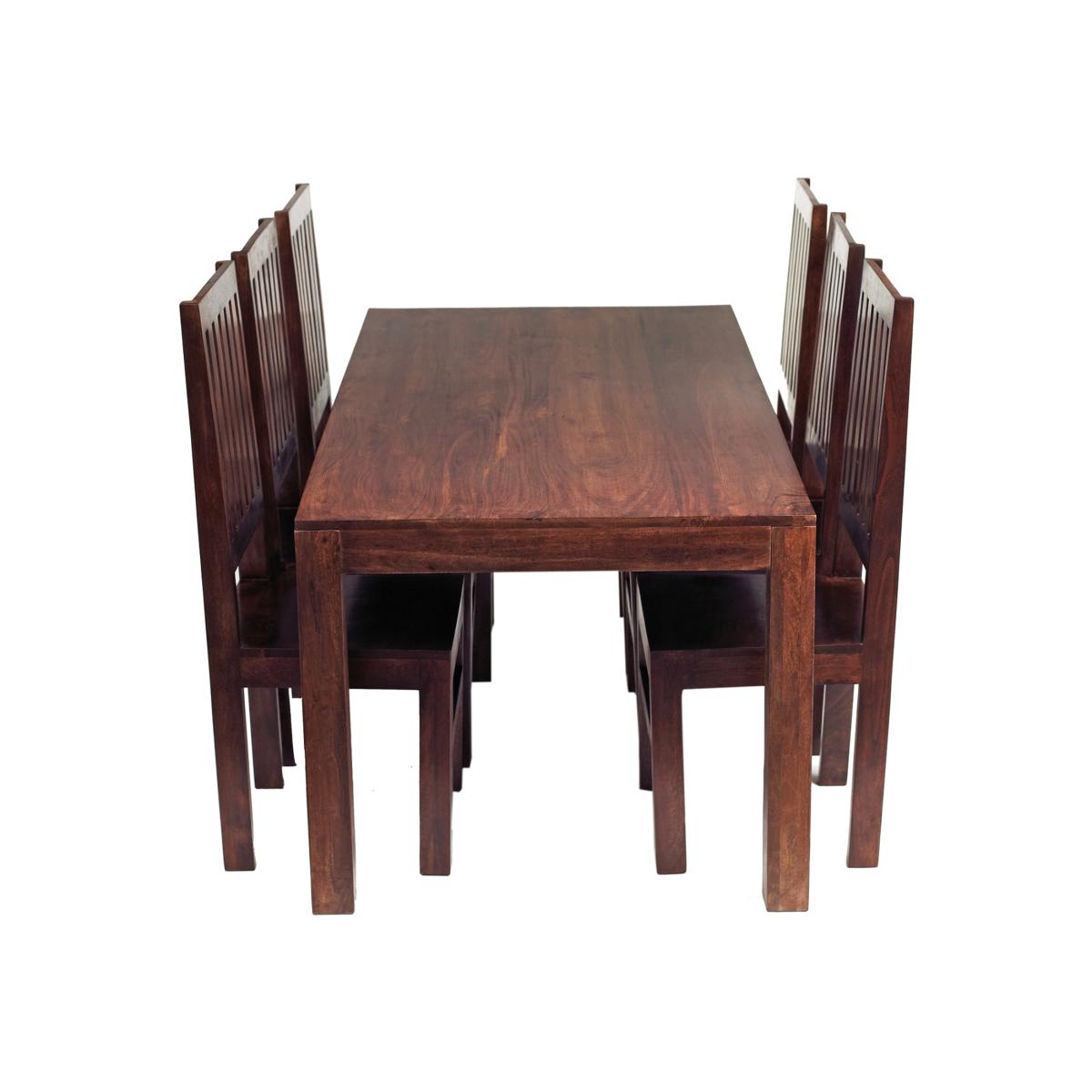 Dark Mango Wood 6 Ft Dining Set with 6 Wooden Chairs - Brown