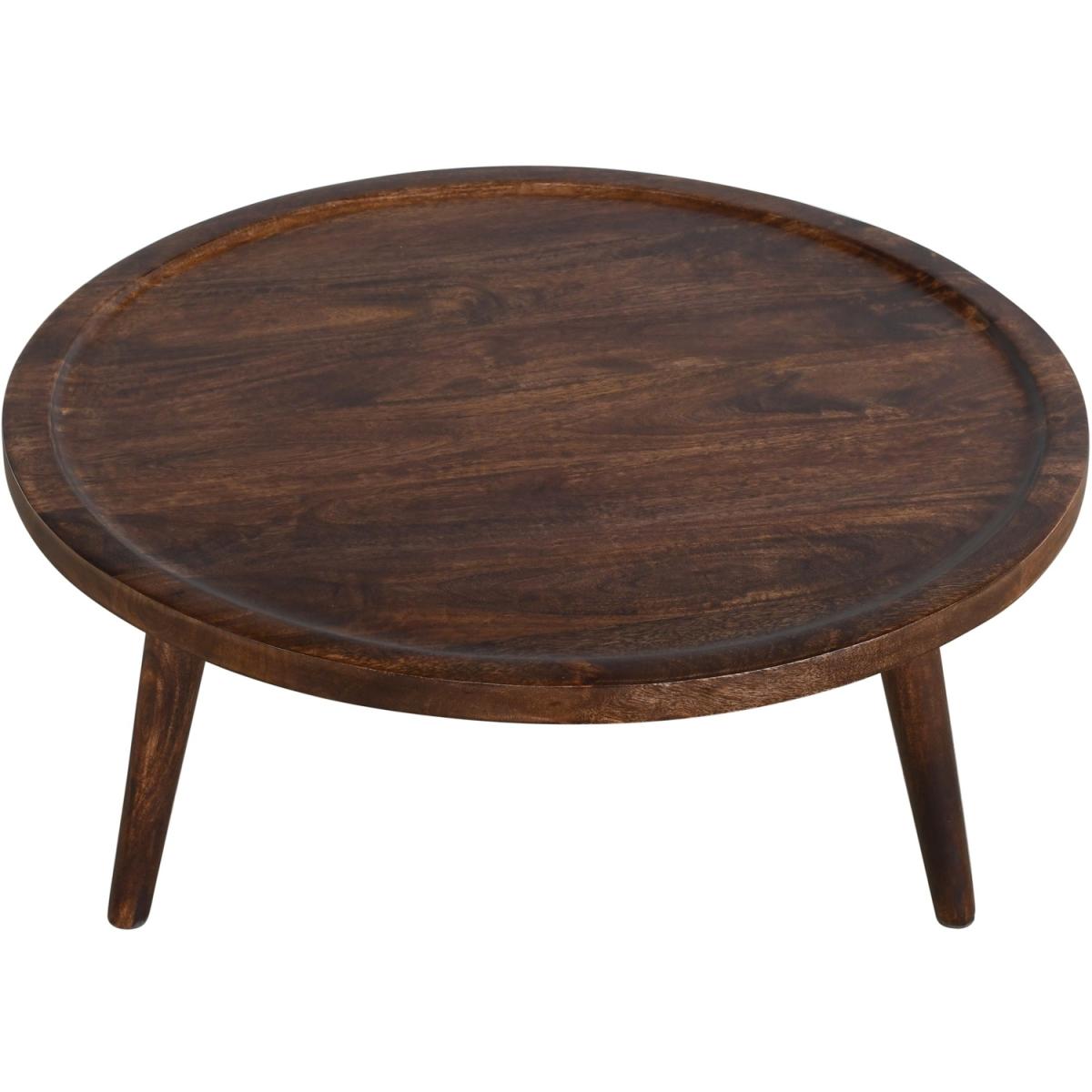 The Handmade Dark Mango Wood Round Coffee Table is a statement piece for your living space. Crafted from high-quality mango wood, it promises durability and strength. The unique round design brings elegance and sophistication to your room, measuring 70x70x30 CM for ample space to hold books, magazines, and beverages. Minimal assembly is required, with only the legs needing attachment using the provided screws. The coffee table's dark lacquered finish not only enhances its beauty but also simplifies cleaning and maintenance, ensuring it remains stunning for years to come. Ready to use out of the box, this table saves you time and hassle. Whether you want to display decorative items or need a functional surface for entertaining guests, the Handmade Dark Mango Wood Round Coffee Table is an excellent choice, combining exceptional design and high-quality craftsmanship to become a centerpiece in any room.