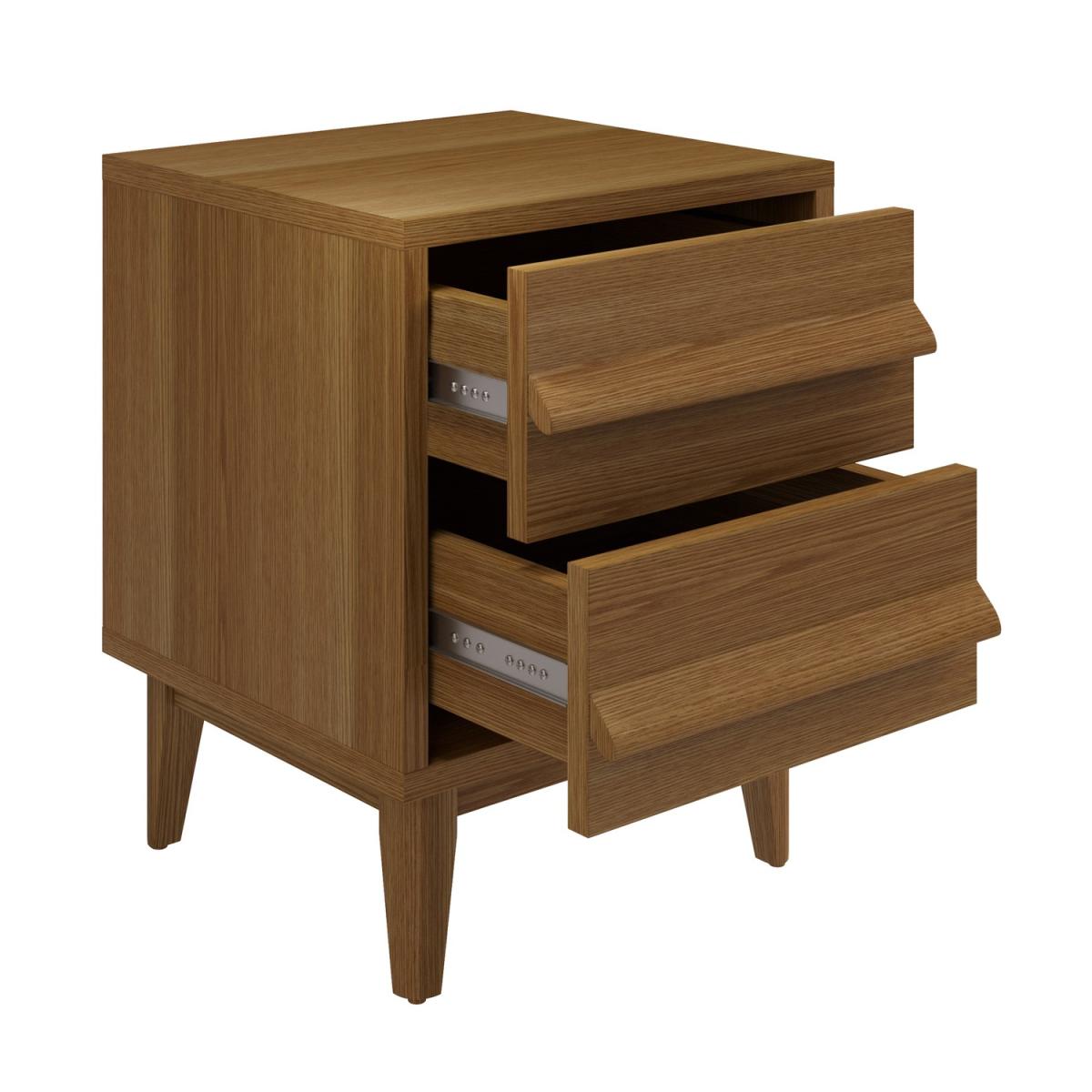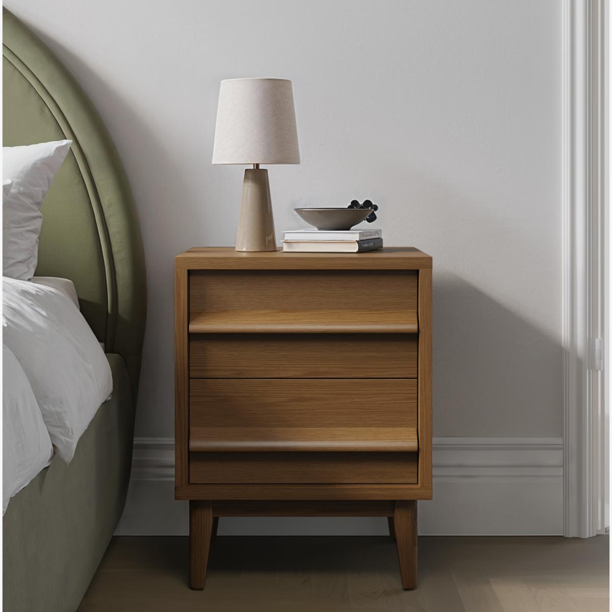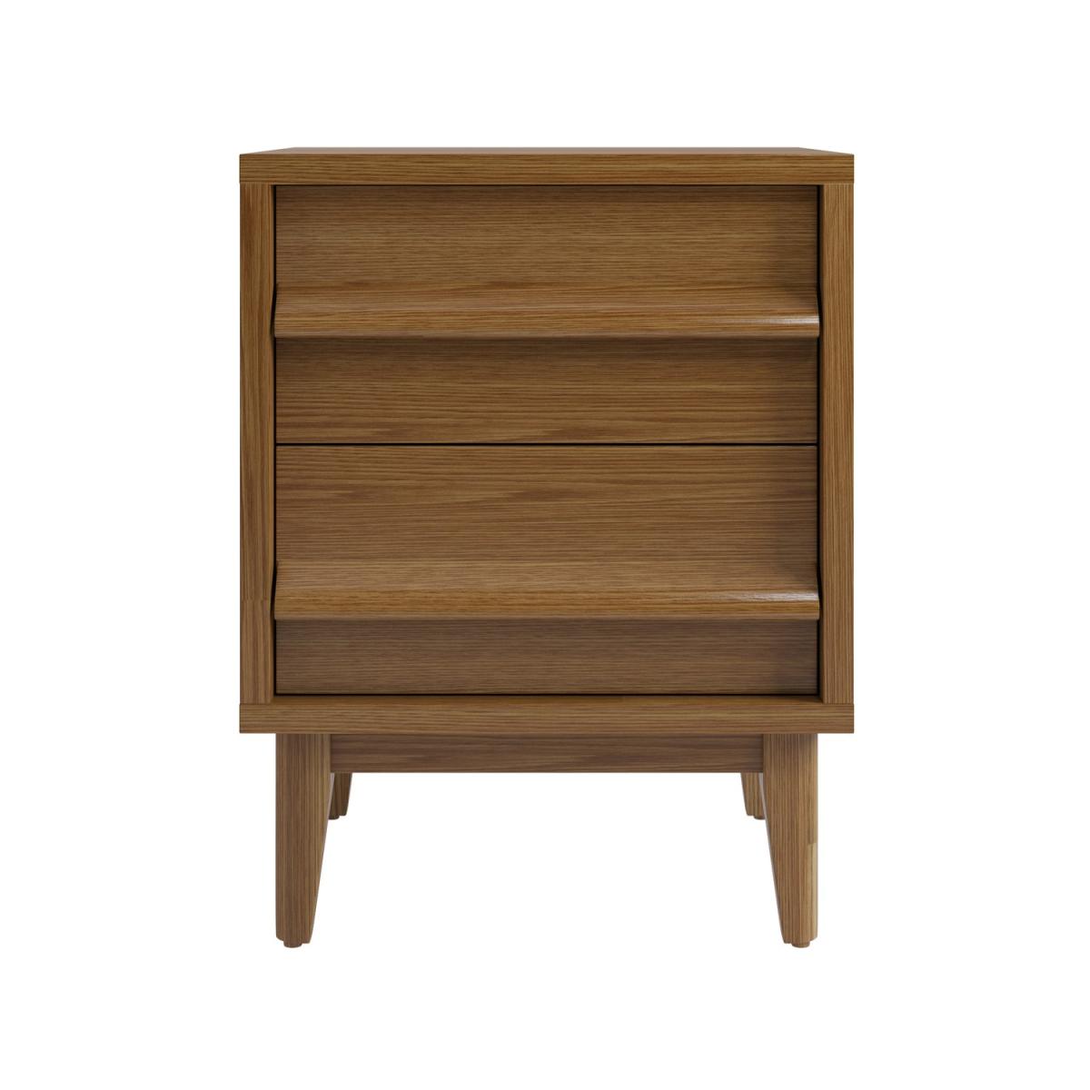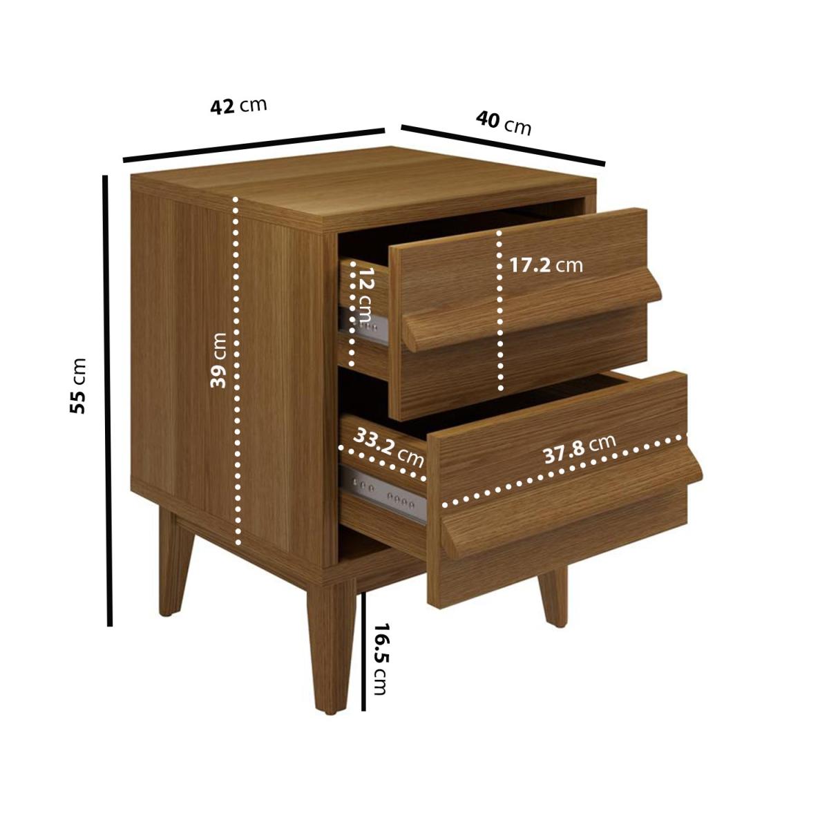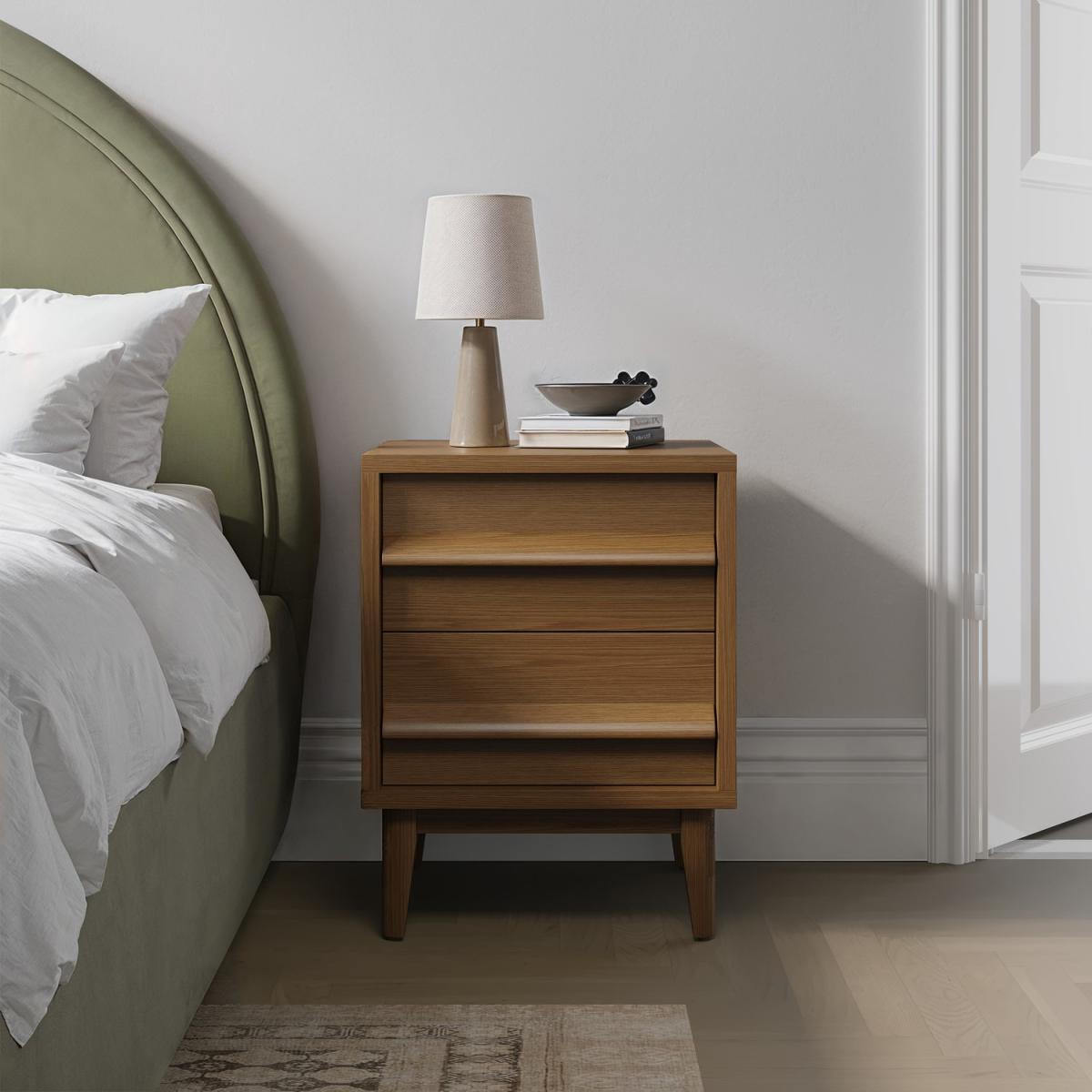 Offers ample storage for bedtime essentials like books, electronics, or personal items. Creates a rustic and natural look, perfect for any bedroom decor. Features easy-glide runners for effortless opening and closing. Ideal for small spaces, guest rooms, or as a multipurpose storage piece. Constructed from high-quality materials for long-lasting use. Includes all hardware and instructions for a quick and hassle-free setup; just attach the legs. Transform your bedroom with the Askel Dark Wood 2-Drawer Bedside Table, a perfect blend of Scandinavian-inspired design and practical functionality. The dark wood finish exudes rustic and natural charm, while the minimalist design offers clean, contemporary lines that complement any interior style. With two spacious drawers, this bedside table provides the perfect storage solution for keeping your essentials organised and within easy reach. The smooth drawer mechanism ensures seamless operation, while its compact size makes it an excellent choice for small spaces or apartments. Versatile in its use, the Askel Bedside Table can also function as a chic side table in your living room or workspace. Dimensions: H55 x W42 x D40 cm Drawer dimensions:H12 x W30 x D33.2 cm Material: Wood Finish: Natural Colour:Dark Brown Minimal Assembly required