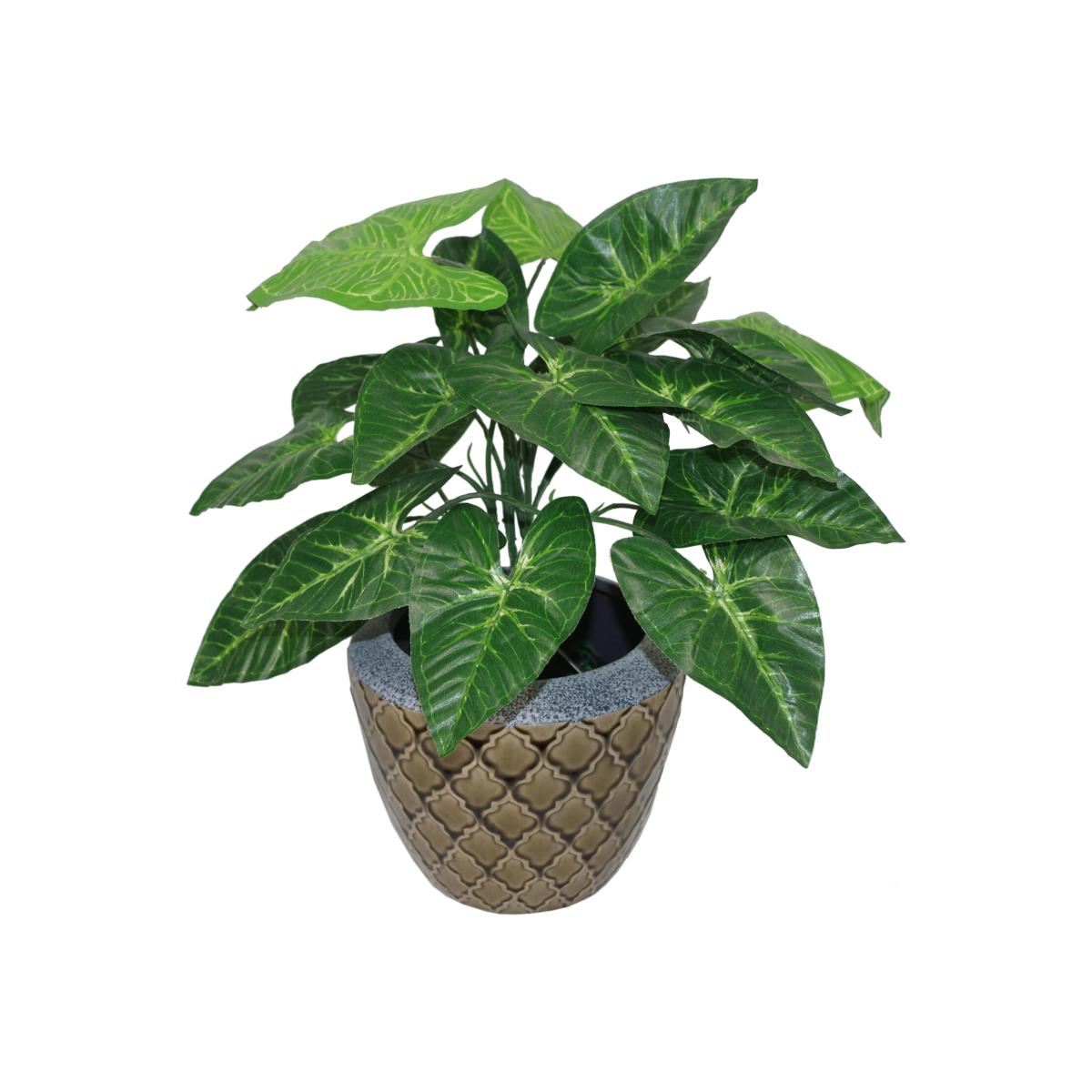 Our artificial plants have realistically shaped leaves. These come ready potted and make ideal artificial houseplants. This plant has dark veined leaves as shown. We have the same plant available in a selection of styles and colours (see our other items). It has a moss covered pot. It is highly realistic with botanically accurate foliage. Stems are wired and can be shaped to your requirements. It comes potted in a plain plastic pot and is ready to display. You can easily put this inside a larger planter if you wish. Ceramic planters pictured are for illustration only and are not included. This plant will arrive in a plain black plastic weighted pot covered with moss.