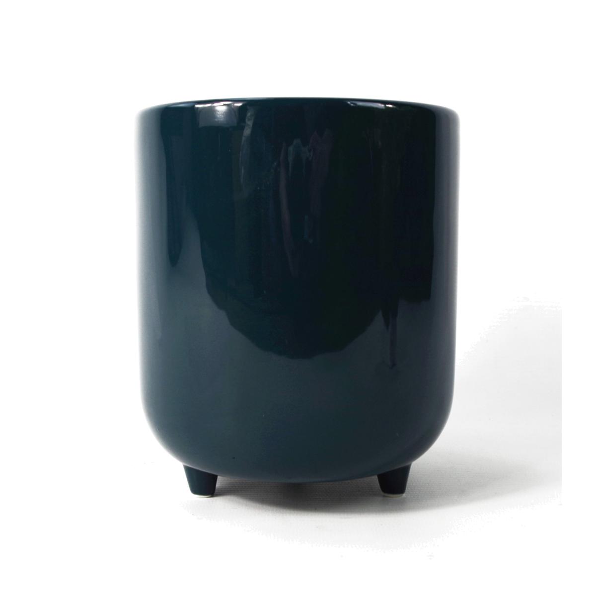 Dark Teal Green Blue Ceramic Planter with Feet - Blue