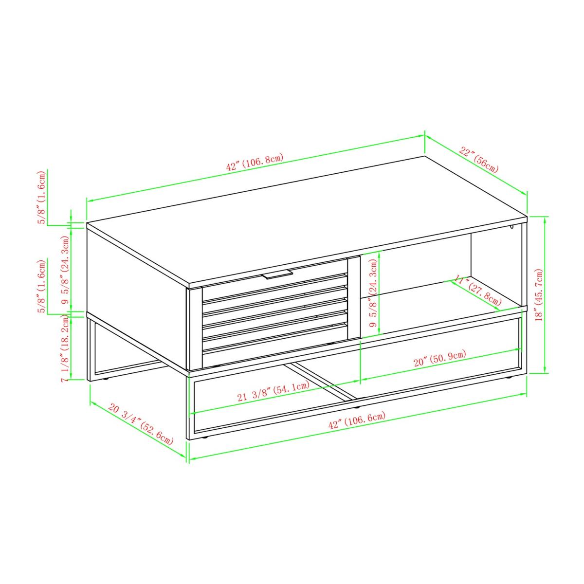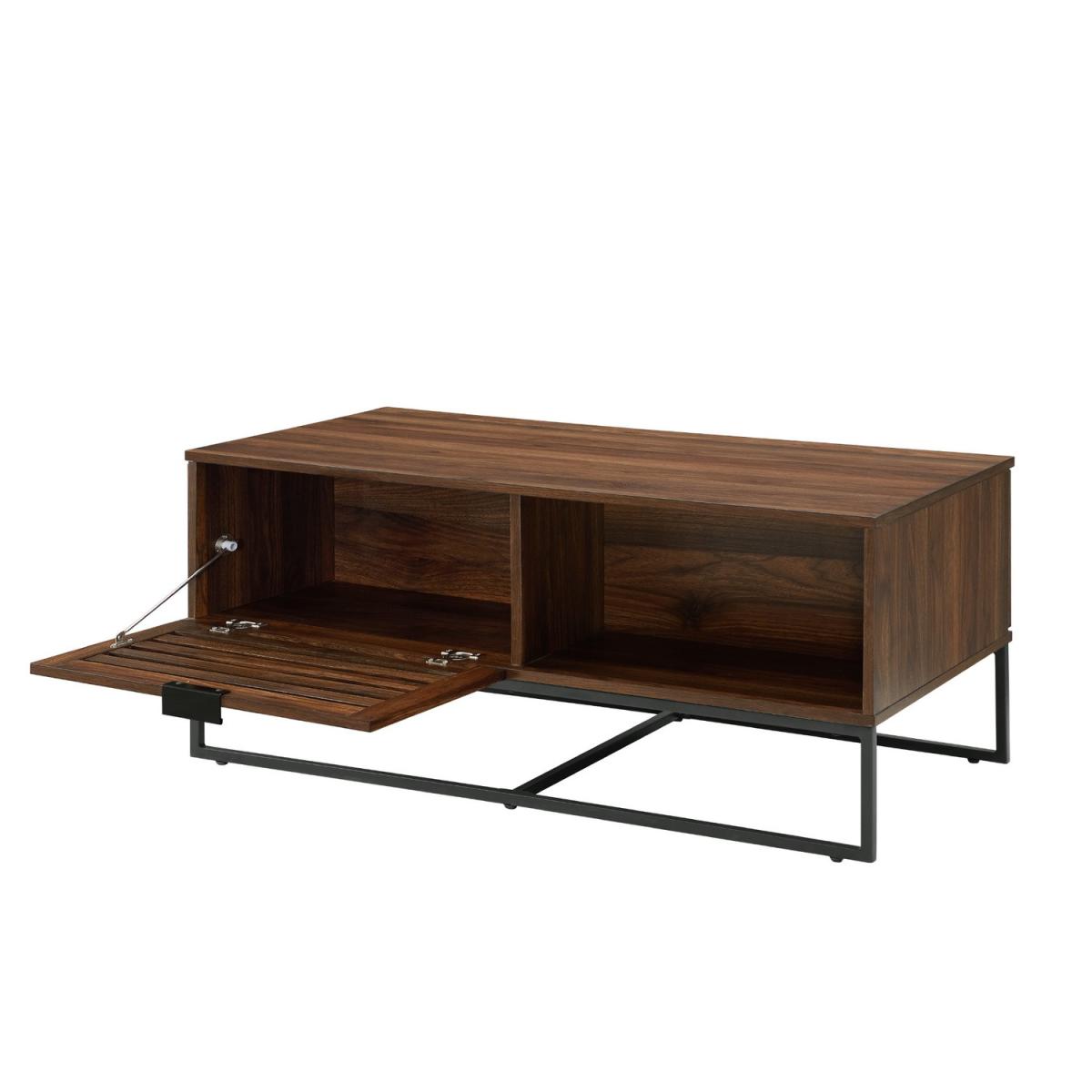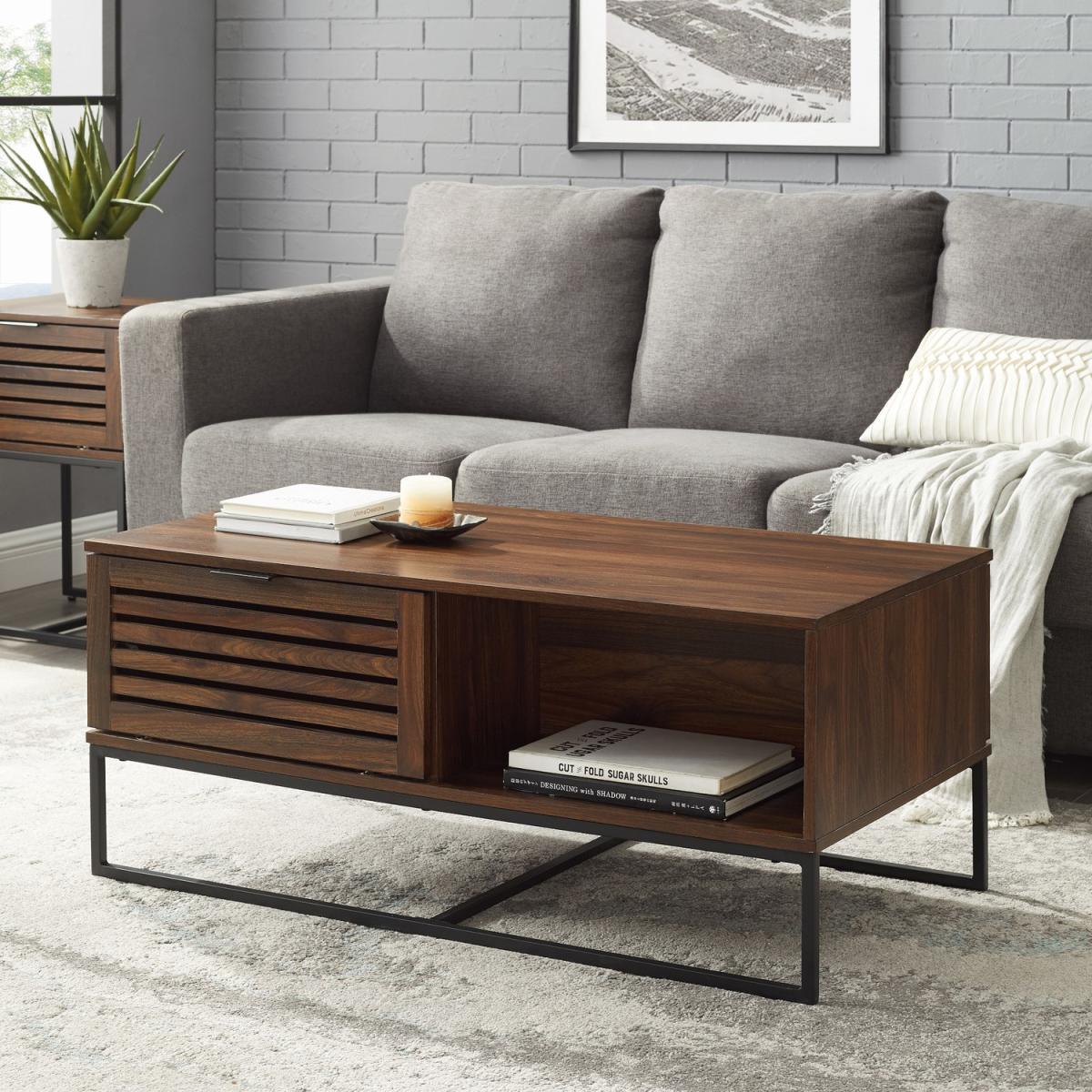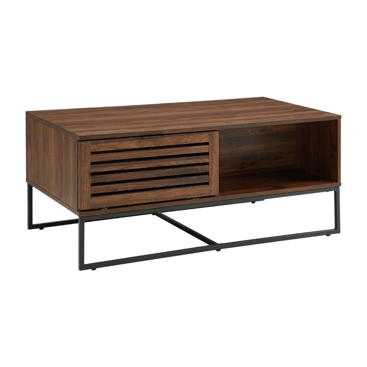 Dark Walnut Coffee Table with Industrial Metal Legs & Storage
