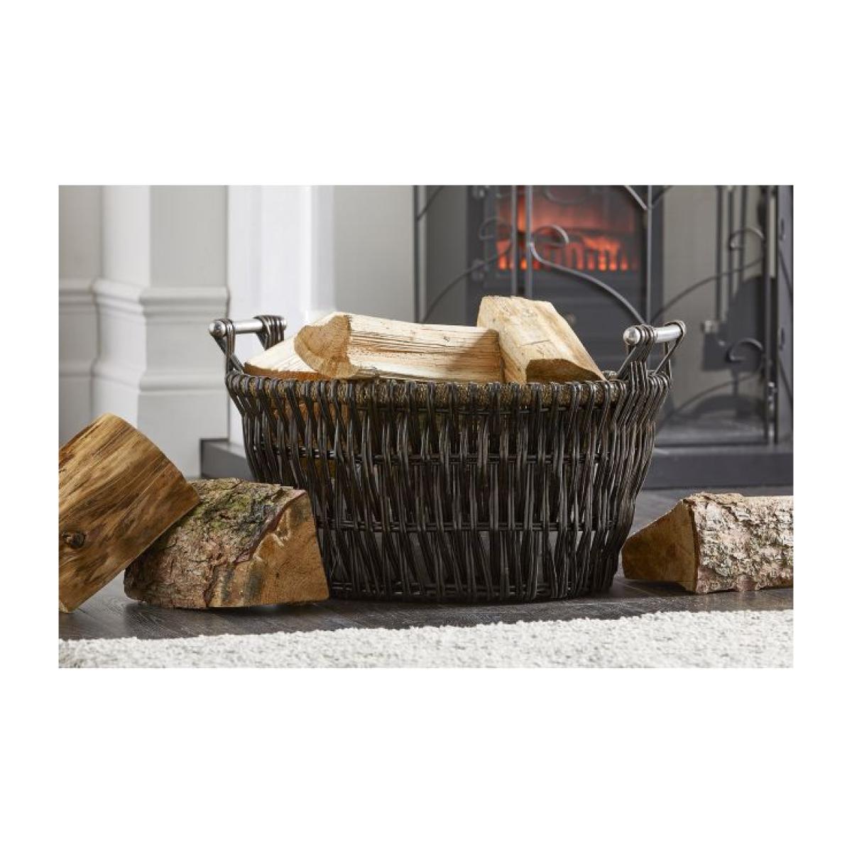 The dark wicker log basket with chrome handles not only looks great, but is also functional - able to hold plenty of logs or lots of firewood in an accessible place next to your fireplace.
