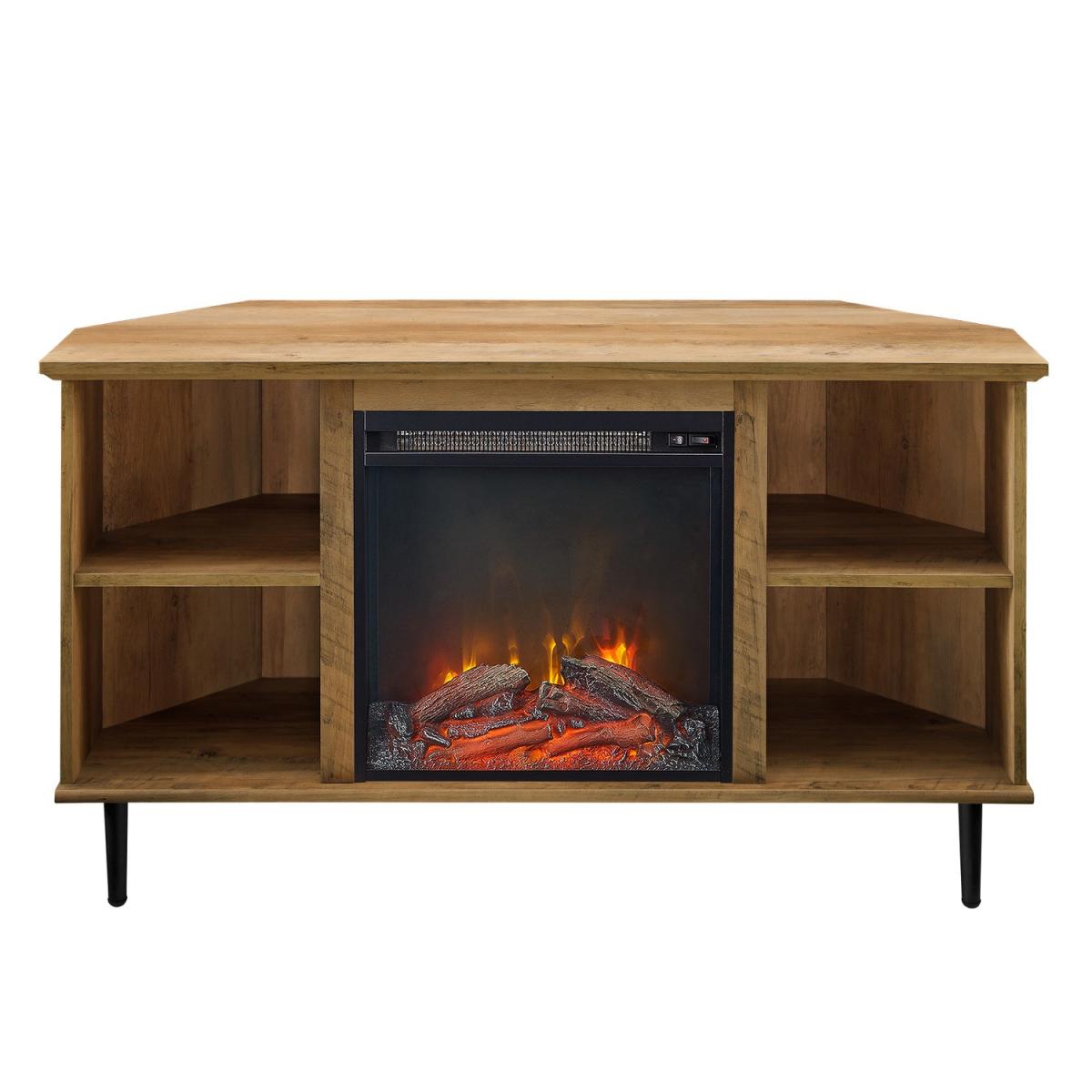Dark Wood Corner TV Unit with Fireplace and Storage - TVs up to 55 - Foster