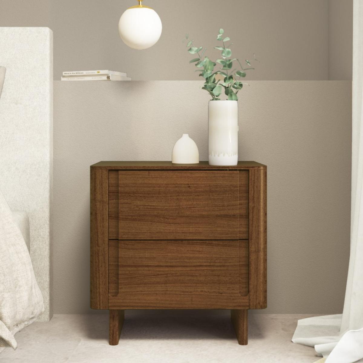 The Emile bedside table features two handy drawers that are great for storing all your essentials. The stunning dark wooden finish matches any interior perfectly. Make sure to check out the Emile collection to bring the look together. Premium and environmentally conscious The Emile collection is kind to the planet as it's made from eucalyptus wood. Its fast-growing nature means it's easy to replenish tree stocks, so it's 100% sustainable. It's also made to last as eucalyptus is a durable hardwood that's highly resistant to dents and scratches. It resembles dark oak for a stunning modern finish. It arrives in FSC-Certified recycled cardboard boxes that are fully recyclable. When you buy Emile, you're helping us protect the planet while gaining a beautiful, long-lasting piece of furniture.