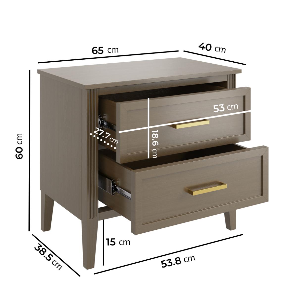 We've updated our Delilah range, keeping the same ever-popular colour, now with a fresh new finish Keep all your bedtime essentials neatly organised with two spacious drawers, featuring smooth metal runners, that offer more room than standard nightstands. Made primarily from solid pine and featuring metal drawer runners, this piece is built to stand up to daily use while showcasing the natural grain and warmth of real wood. The wood finish adds depth and texture, giving your bedroom a warm and inviting feel that works with a range of colour palettes. The large tabletop offers plenty of space for a lamp, clock, and your favourite book or candle—everything you need within arm’s reach. With its clean lines and understated silhouette, Delilah blends effortlessly with both classic and contemporary décor. The Delilah Dark Wood Wide Bedside Table is a timeless nightstand crafted for both style and practicality. Made primarily from solid pine, this piece offers strength and a beautiful natural grain that’s highlighted by its rich dark wood finish. With two extra-wide drawers, it provides ample storage for keeping nighttime essentials neatly tucked away. The spacious top is perfect for a bedside lamp, your favourite book, or a decorative accessory. With its simple, elegant lines and warm wood tone, Delilah fits effortlessly into both classic and contemporary bedroom schemes—bringing depth, charm, and functionality to your space. This is part of our refreshed Delilah range, featuring the same rich dark wood colour you know and love, now with an updated finish for extra durability. While this means it won’t be a perfect match to previous Delilah dark wood pieces, you’re getting a stylish update designed to last even longer. Dimensions:W65 x D40 x H60 cm Inner Drawer Dimensions:W46.4 x D27.7 x H10.5 cm Colour:Dark Wood Material: Solid Pine and MDF Finish:Dark Grey Wash Number of drawers: 2 Assembly required: Yes Weight: 13.47kg Packaging Dimensions:W74.8 x D48.4 x H20.2 cm