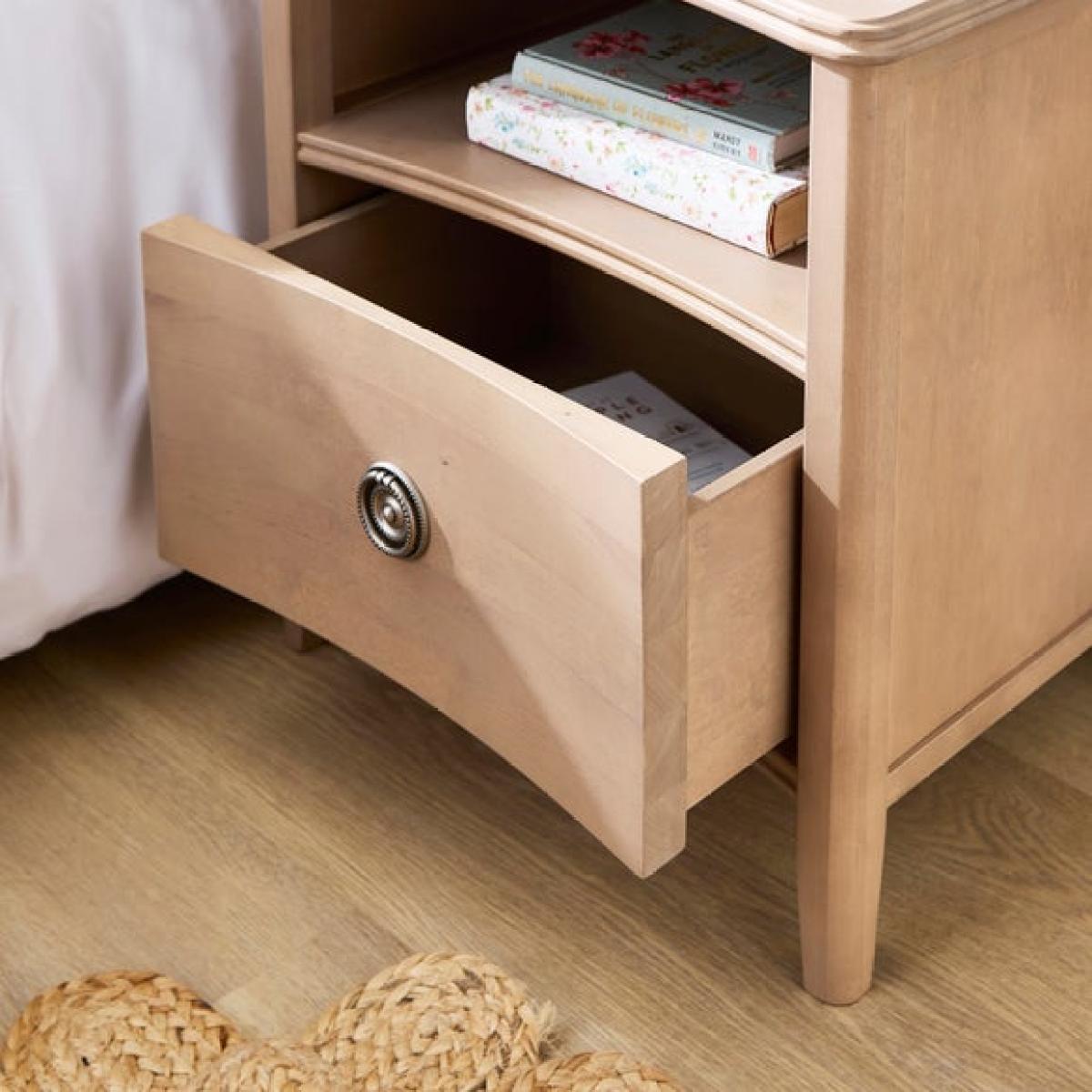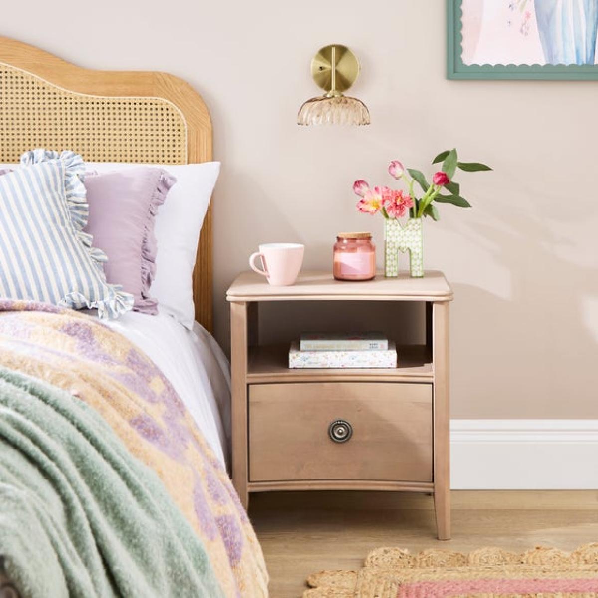 * Solid birch frame * Curved drawer front * Soft close drawer Beautifully built from solid birch, the Darlington bedside table is a refined companion for your bedroom. Its curved drawer front and soft-close mechanism offer both practicality and charm, while the natural grain of the wood brings a warm, tactile finish. With a handy drawer for keeping night-time essentials within reach, this piece combines sturdy construction with gentle, elegant detailing.