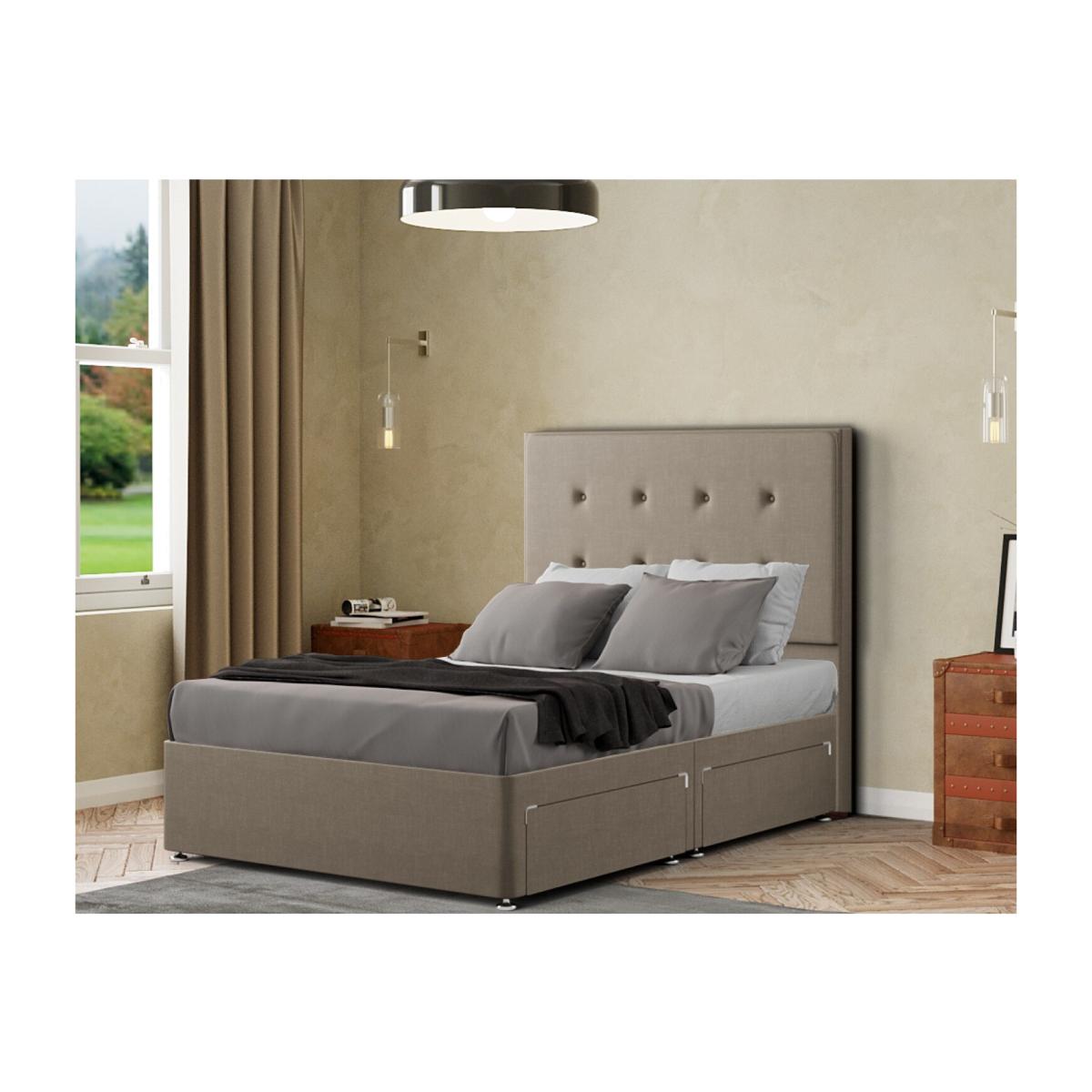 Introducing the Darlington Divan Bed - Elevate Your Bedroom with British Craftsmanship. Crafted in the UK The Darlington Divan Bed is a testament to British craftsmanship, meticulously designed and built to ensure enduring quality. Impeccable Design Elevate your bedroom with its floor-standing 54-inch headboard adorned with matching buttons, radiating sophistication and adding a touch of luxury to your space. Customized for Your Style Express your unique taste with a range of colors and fabric choices. The Darlington Divan Bed offers various options to seamlessly match your decor. Available in All Sizes Whether you need a single, small double, double, king, or super king size, we have the perfect bed ready and waiting to fit your space. Mattress Not Included Designed to pair seamlessly with your preferred mattress, the Darlington Divan Bed allows you to create a personalized sleep sanctuary. Premium Quality Crafted with top-tier materials, this divan bed ensures durability and comfort, promising years of restful nights. Elevate your bedroom with the Darlington Divan Bed and experience the perfect blend of style, functionality, and quality. Transform your space into a haven of comfort and sophistication,order yours today.