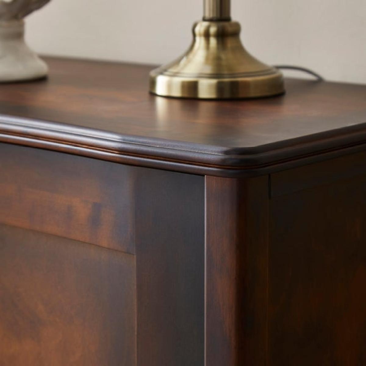 I love this large sideboard for its timeless design and versatility. It works particularly well in both classic and contemporary interiors, thanks to its warm wood finish and clean lines. The Darlington piece offers ample storage, making it ideal for organising dining room essentials, living room accessories, or even entryway clutter. When styling, consider adding a mix of decorative objects like vases, table lamps, or art frames to prevent it from looking too utilitarian. For a balanced look, keep surfaces uncluttered with a few statement pieces and use the drawers or cabinets to hide less attractive items. Its neutral tone allows it to adapt easily to different colour schemes and styles, making it a smart investment piece for various interior setups.