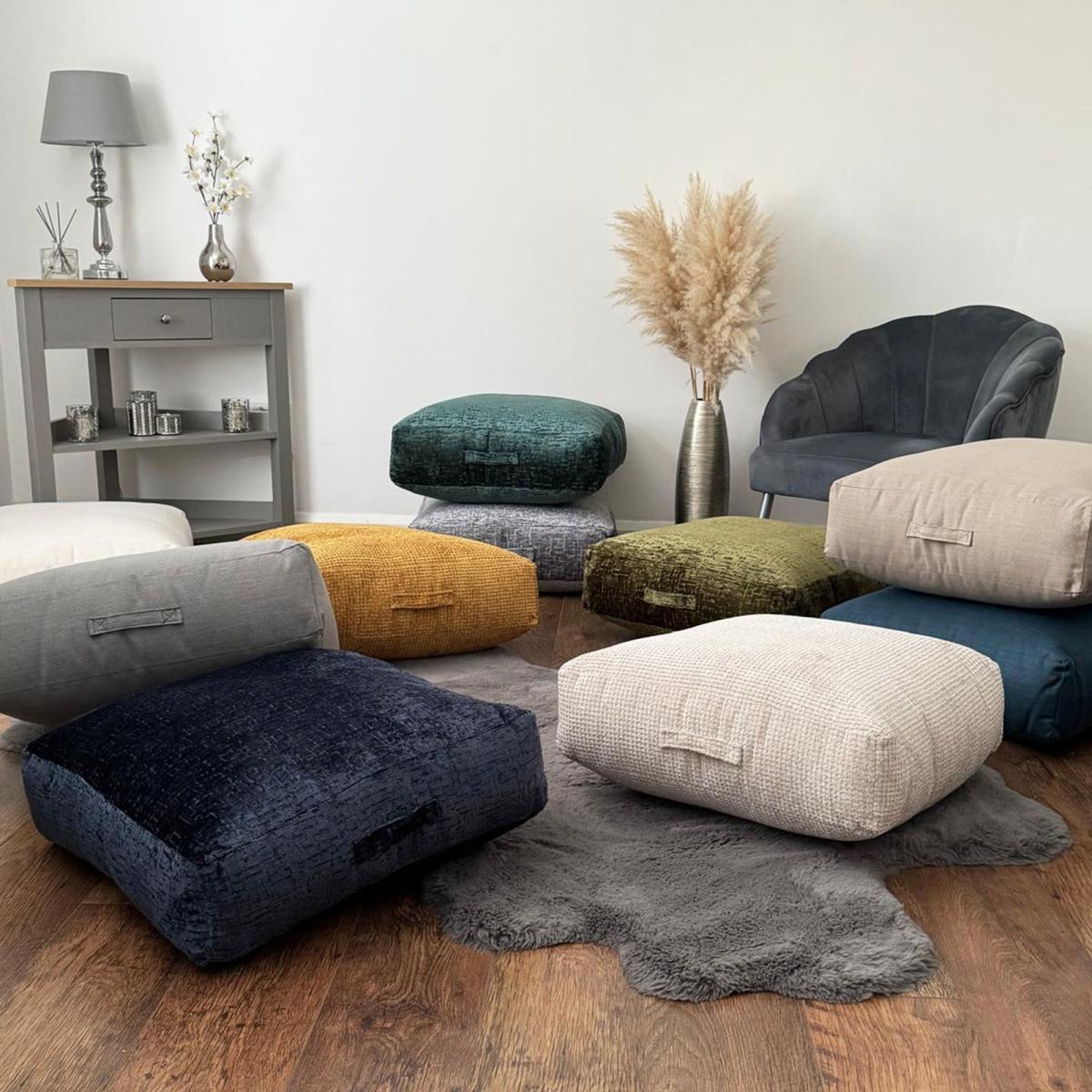 * Square Floor Cushion, great for easy additional seating* 100% Recycled Luxury Fibre Filling* Concealed zip opening* Removable inner for easy cleaning* Handle for easy carrying and moving* Colourways available to match your living space This Square Floor Cushion is perfect for easy additional seating, featuring 100% recycled luxury fibre filling. With a concealed zip opening, a removable inner for simple cleaning, and a handle for easy moving, multiple colour options are available to match your living space.