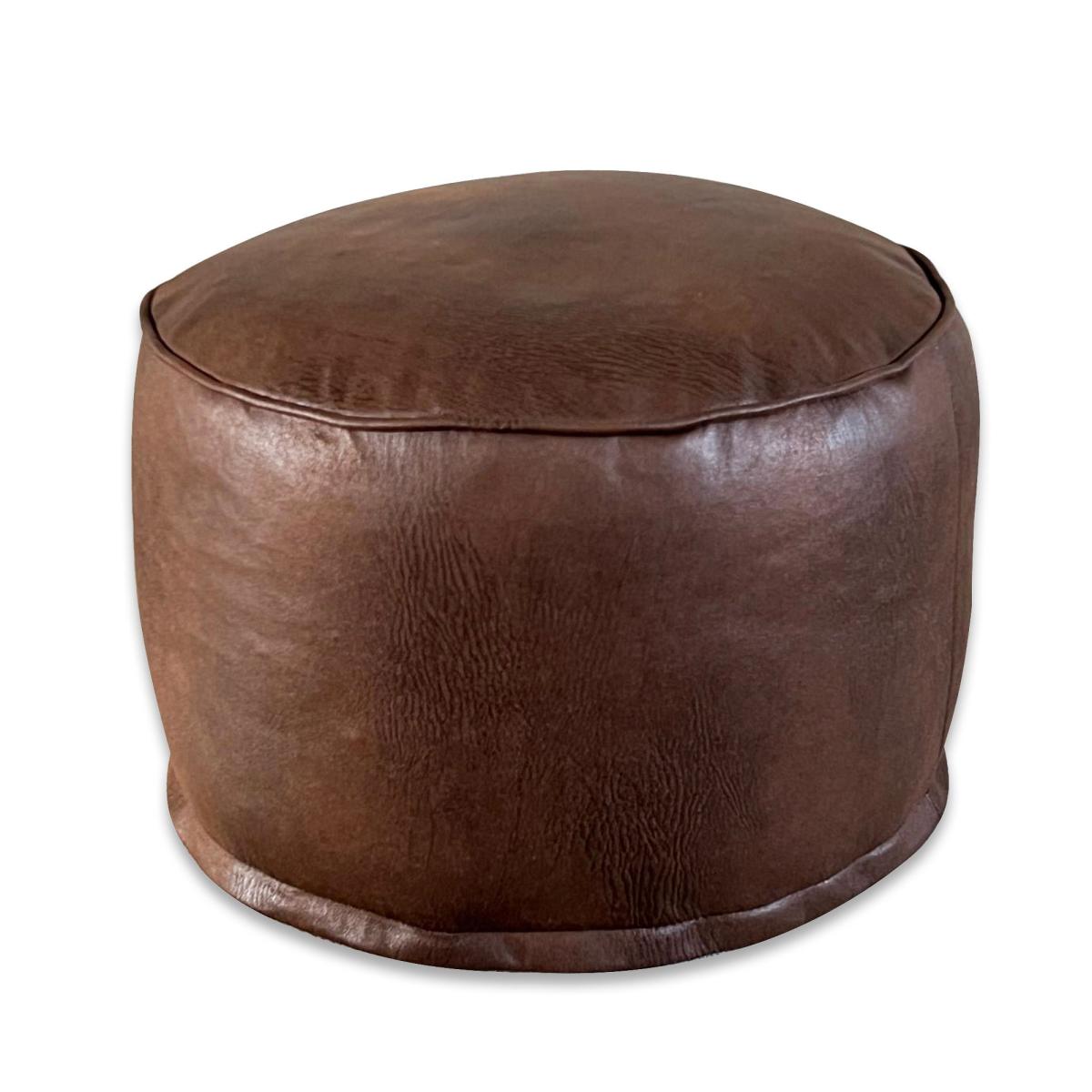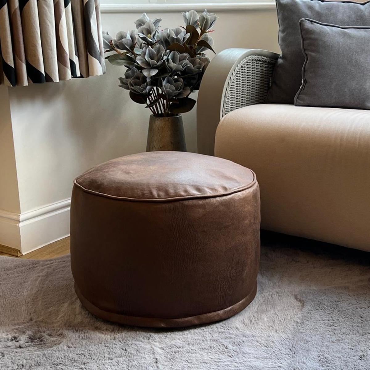 * Faux leather fabric* Removable inner for easy cleaning* Additional seating Sit back and relax on our round pouffe. Crafted from our beautiful faux leather fabric you can easily add the style and elegance of the industrial aesthetic without the price tag. Made to stand the test of time with our hardwearing fabric base this is the perfect addition to any seating area.