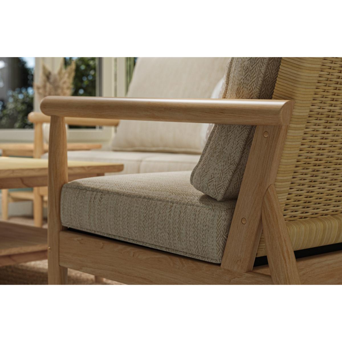 The  Daro Dorchester 2.5 Seater Lounging Sofa plenty of space for two people to relax on, and features a handwoven backrest in a light oak finish. The Dorchester Range includes a lounging chair and lounging sofas in two sizes. Made from Mindi wood, this contemporary range features pole arms and a handwoven backrest in a light oak finish. Exclusive design Hand crafted Mindi Wood Choice of fabrics, removable covers 1 Year Manufacturer's Guarantee Dimensions: Height 90cm  Width 160cm Depth 88cm  All screens vary in colour reproduction and whilst every effort has been made to display the colour as accurately as possible it is for guidance only