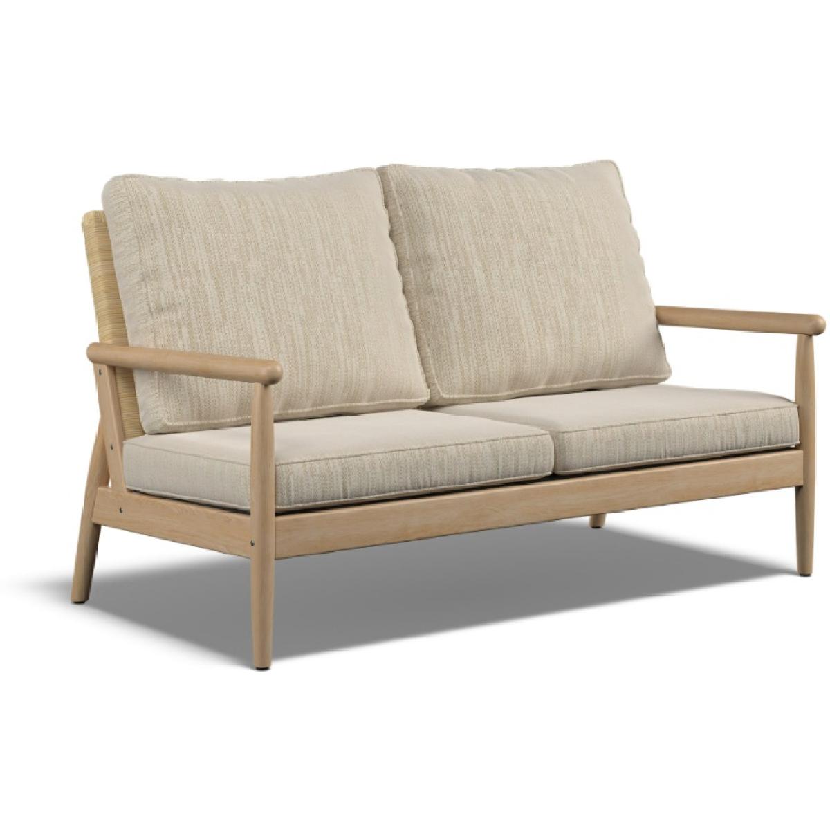 The  Daro Dorchester 2.5 Seater Lounging Sofa plenty of space for two people to relax on, and features a handwoven backrest in a light oak finish. The Dorchester Range includes a lounging chair and lounging sofas in two sizes. Made from Mindi wood, this contemporary range features pole arms and a handwoven backrest in a light oak finish. Exclusive design Hand crafted Mindi Wood Choice of fabrics, removable covers 1 Year Manufacturer's Guarantee Dimensions: Height 90cm  Width 160cm Depth 88cm  All screens vary in colour reproduction and whilst every effort has been made to display the colour as accurately as possible it is for guidance only