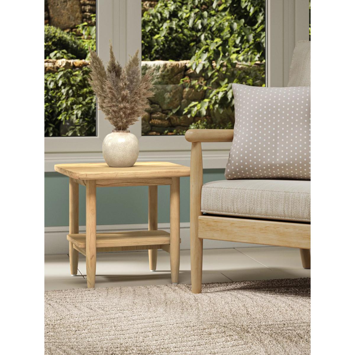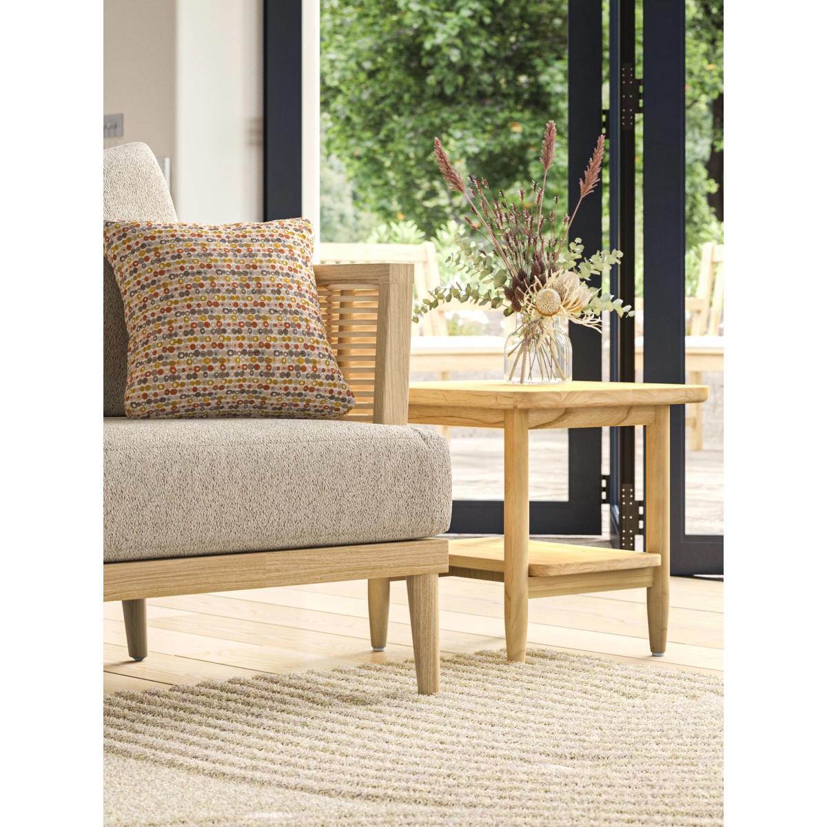 Handcrafted square side table made from natural Mindi wood and featuring a handy shelf. An ideal accompaniment to the Dorchester and the Martinique indoor furniture ranges from Daro or enjoy it as a standalone item.