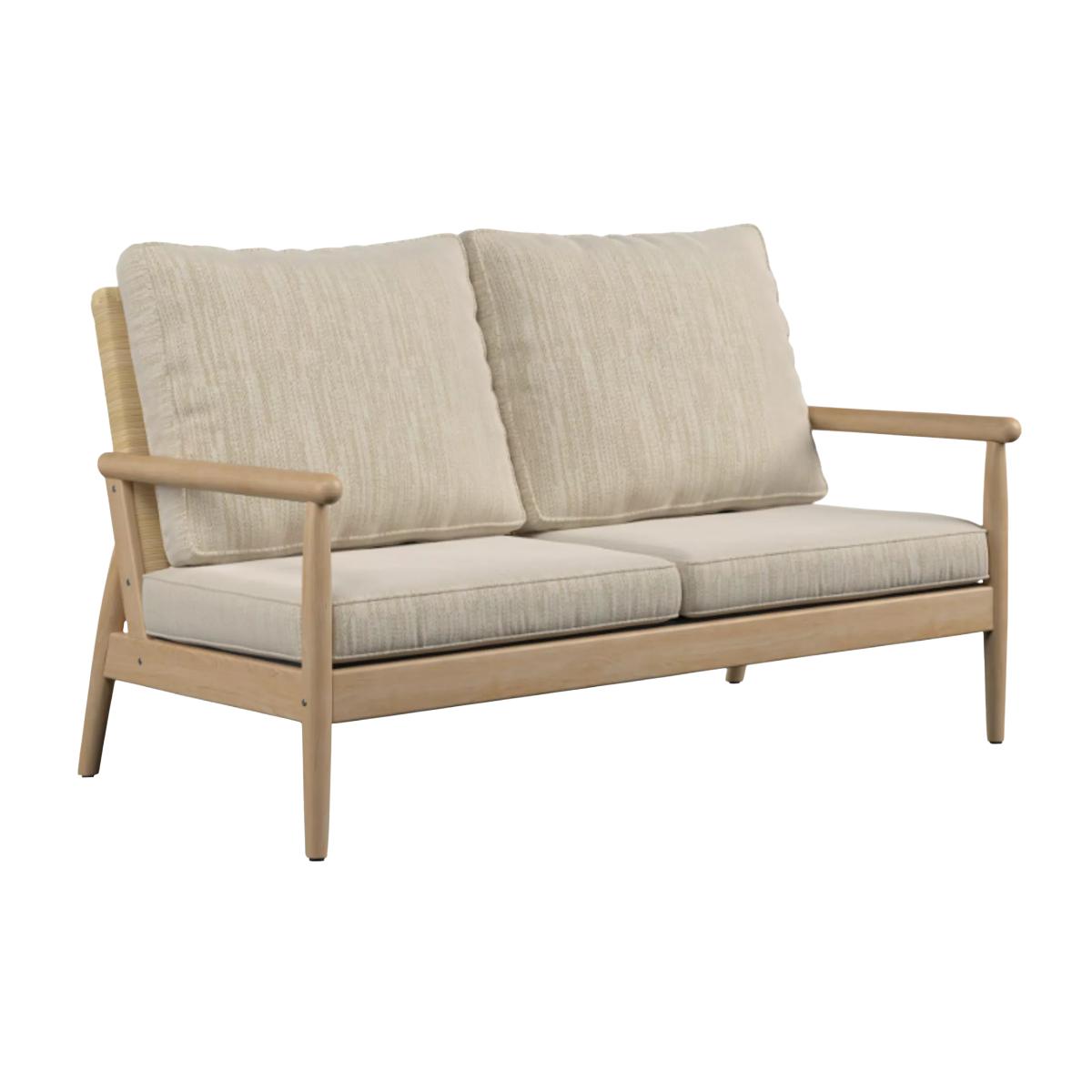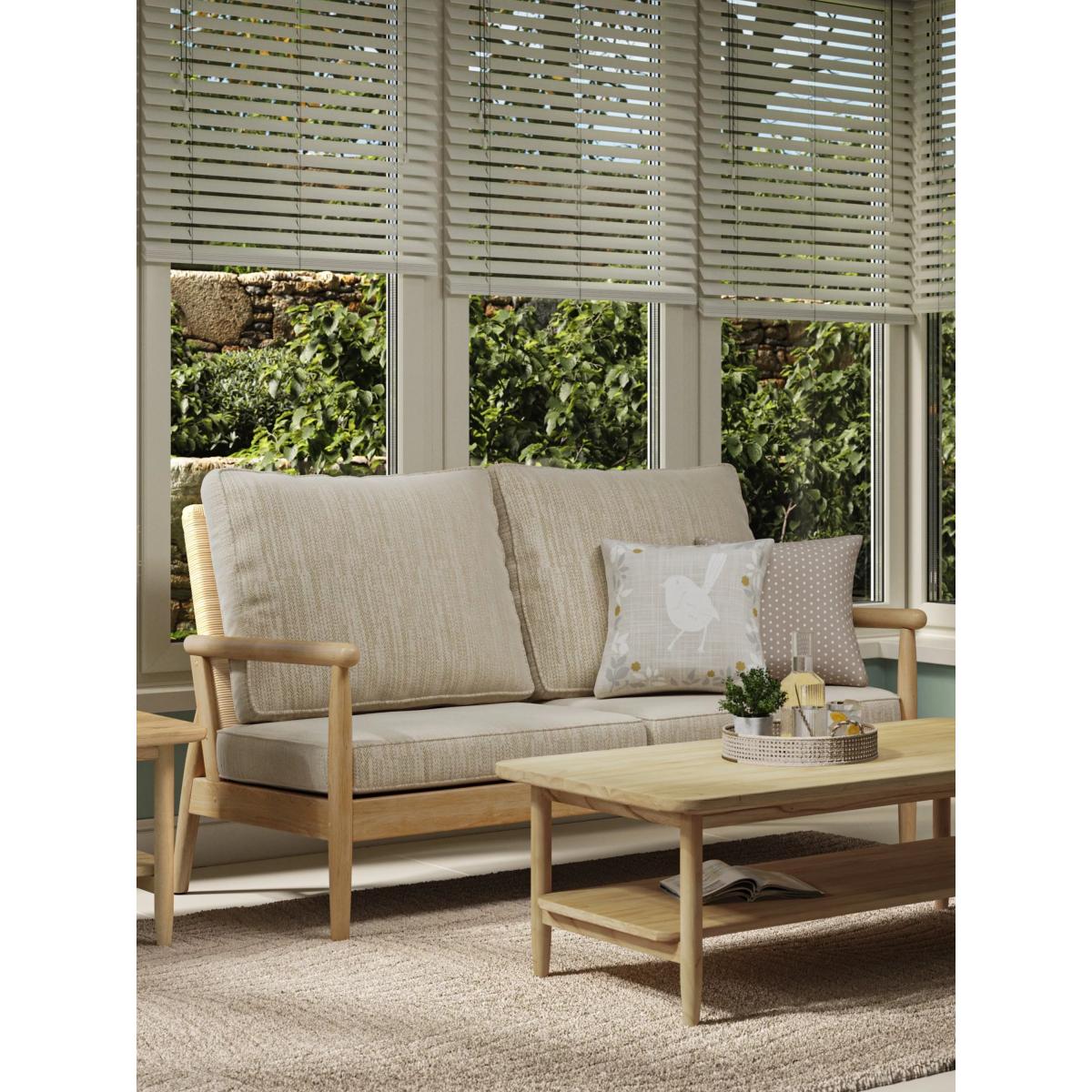 The Dorchester 2.5-seater sofa features a sleek Mindi wood frame and rounded wooden arms with a handwoven rattan backrest in a light oak finish. This contemporary sofa is designed to enhance any living space, whether it's a conservatory, orangery or an open-plan environment. The sofa includes two large base cushions and two large backrest cushions. Mindi wood frame handcrafted in Indonesia Natural rattan backrest Reversible UK-manufactured cushions with quality foam bases and fibre-filled cushioning Small scatter cushions pictured are not included Low maintenance and no assembly required 2-year extended manufacturer's frame warranty when registered within 28 days
