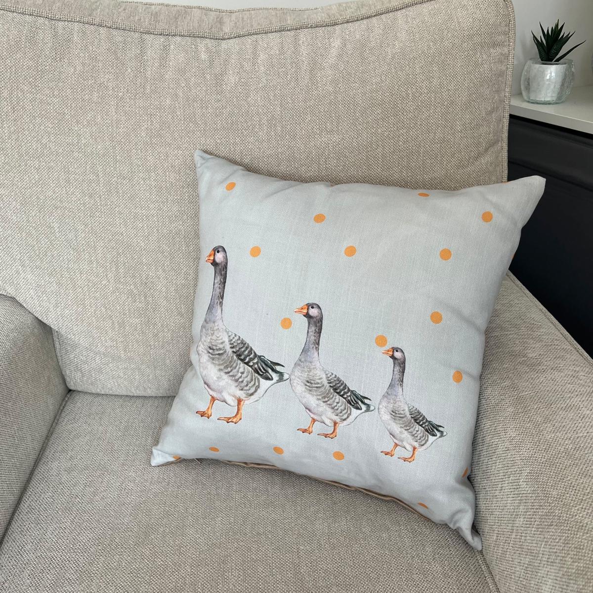 I really like this one-it's a fun, playful piece that adds character to neutral or contemporary interiors. The grey colour makes it versatile, pairing well with both cool and warm-toned cushions or upholstery. The goose design adds a touch of whimsy, perfect for a casual living space or even a child's room. To style it effectively, try mixing it with textured textiles or patterned cushions to create a layered, inviting look. It works well on a sofa, armchair, or even a window seat, providing both comfort and visual interest without overwhelming the space.