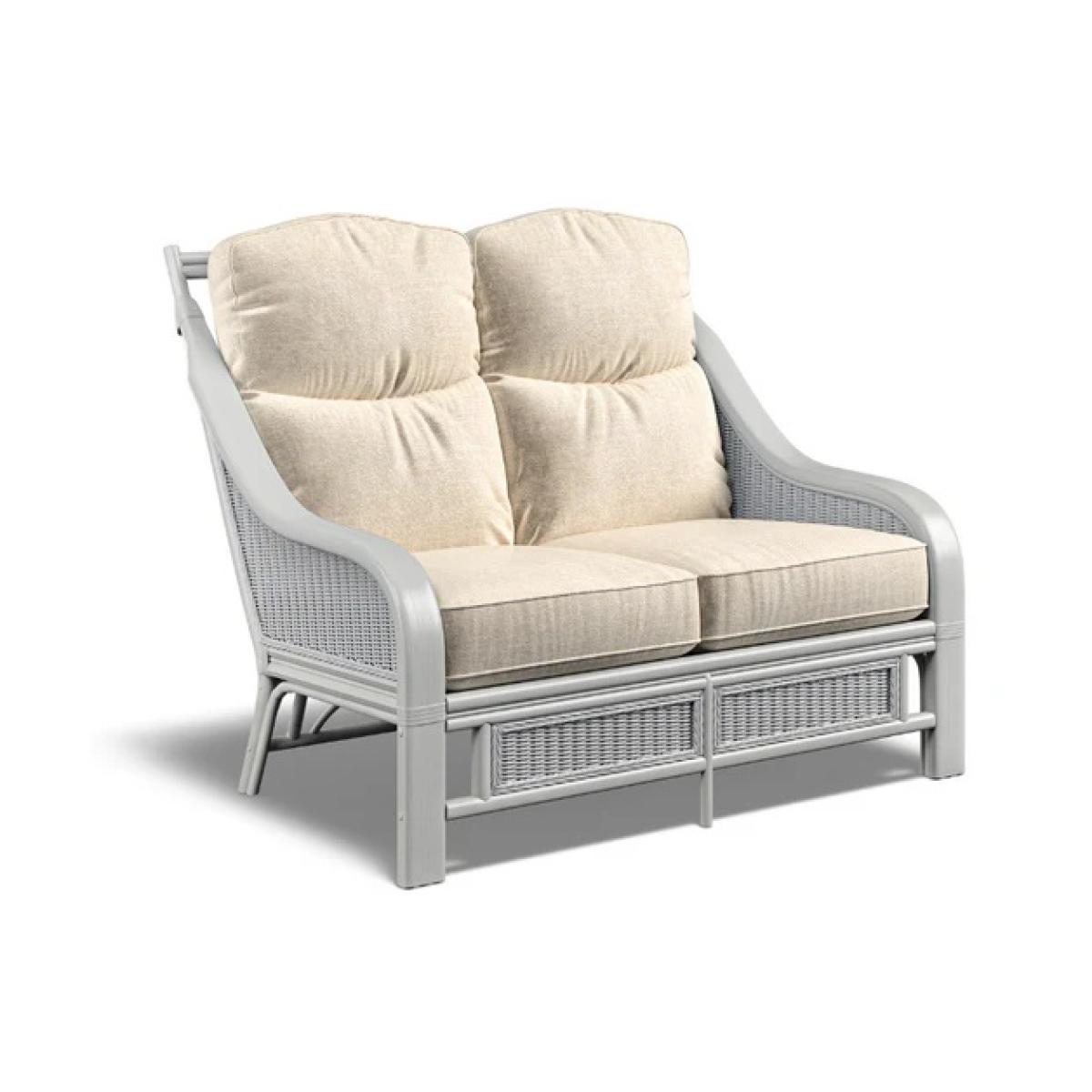 The Daro Heathfield Grey Wash 2 Seater Lounging Sofa an attractive lounging sofa perfect for the two of you to relax on, combines sweeping planed cane arms with subtle rattan weave infills to create a stylish look for your conservatory, orangery or sun room. Each piece in the range is hand-finished in a striking solid grey. making the ideal foundation for a fabric of your choice. Hand crafted using sustainable materials Dacron wrapped, reflex foam UK manufactured cushions Removable & reversible covers 1 Year Manufacturer's Guarantee Dimensions: Height 93cm  Width 124cm  Depth 104cm  All screens vary in colour reproduction and whilst every effort has been made to display the colour as accurately as possible it is for guidance only