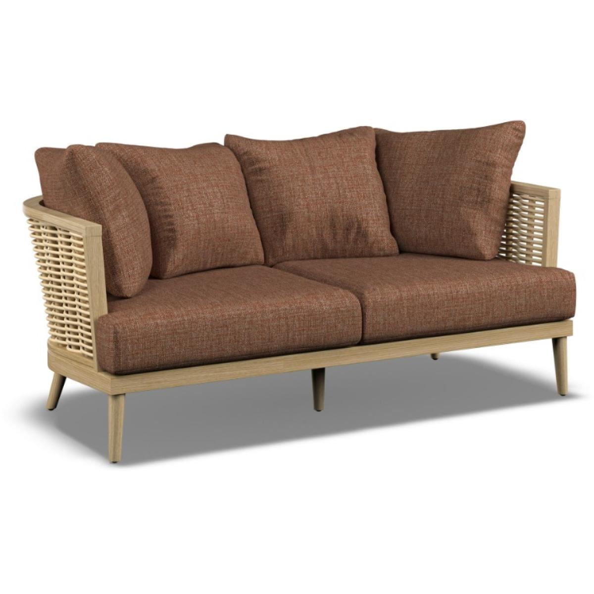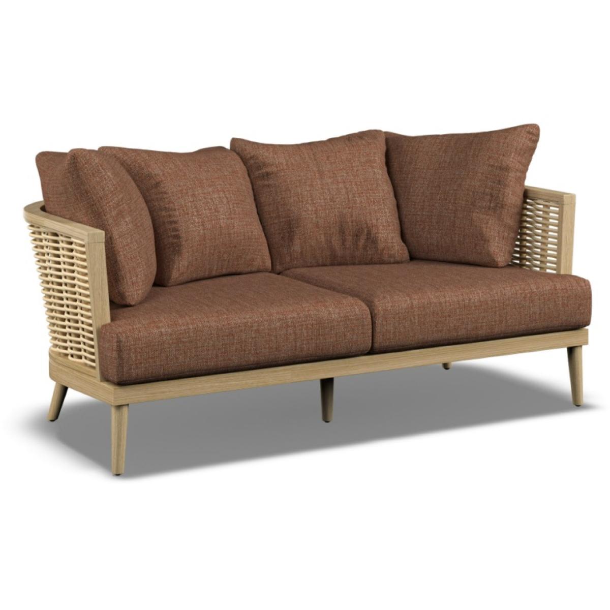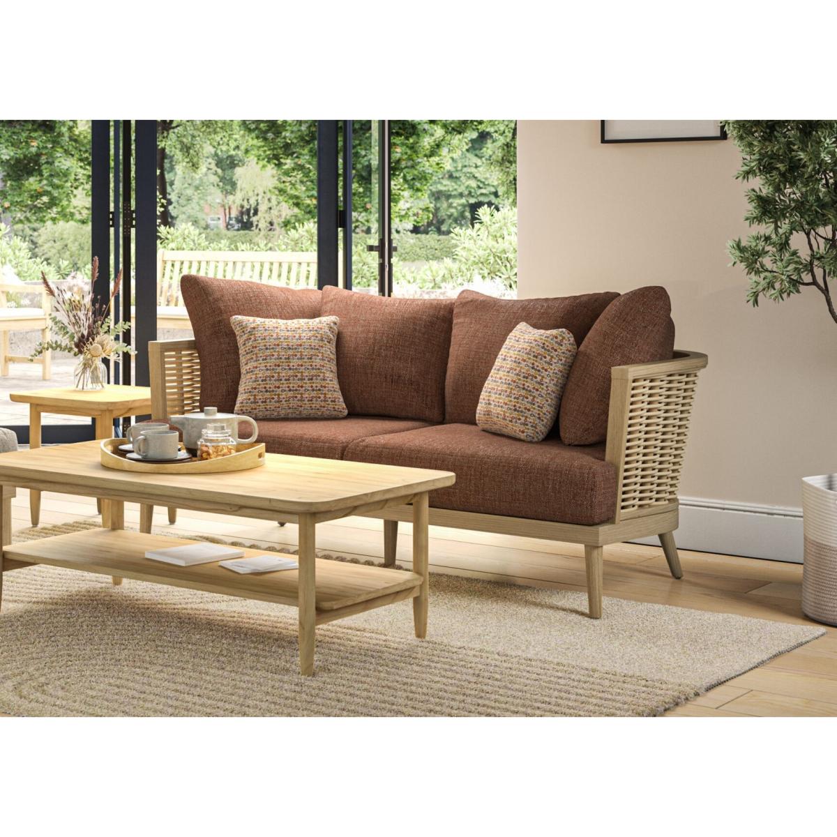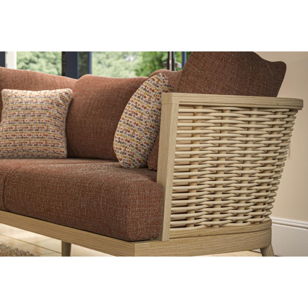 The Daro Martinique 2.5 Seater Lounging Sofa offering plenty of space for two, blends Mindi wood and large-format natural rattan to create a striking piece for the home, perfectly suited for the Conservatory, Orangery, or an open-plan environment. The collection also includes a sofa with sumptuous cushions for relaxed lounging. Exclusive design Hand crafted Mindi Wood Choice of fabrics, removable covers 1 Year Manufacturer's Guarantee Dimensions: Height 66cm  Width 156cm Depth 88cm  All screens vary in colour reproduction and whilst every effort has been made to display the colour as accurately as possible it is for guidance only