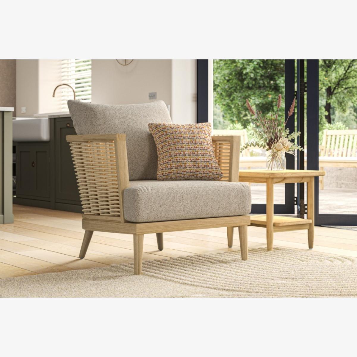 I’m a fan of the Martinique chair for its clean lines and light oak finish - it slots effortlessly into Scandi, coastal or Japandi schemes. The woven sides add texture without overwhelming a neutral palette, so it’s ideal in living rooms or sunrooms where you want a relaxed, airy feel. To style, layer a chunky knit throw over one arm and add a small lumbar cushion in a complementary tone - think soft terracotta or sage green - to introduce subtle colour. Pair it with a slimline side table and a table lamp for a reading nook, or cluster two chairs around a low coffee table for informal seating.
