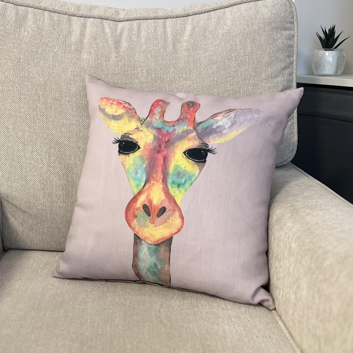 The pink giraffe cushion is a playful yet stylish addition that can add colour and personality to a range of interiors. I love how its vibrant, multi-coloured design makes it a versatile accent piece-perfect for contemporary, eclectic, or even boho-styled spaces. It works particularly well on neutral sofas or armchairs, where it can bring a pop of colour without overwhelming the decor. For practical styling tips, consider pairing it with other colourful or textured cushions to create a layered, inviting look. Its fun, quirky character makes it ideal for children's rooms or living areas where a dash of whimsy is desired, and it’s equally at home in relaxed spaces looking to introduce a touch of personality.