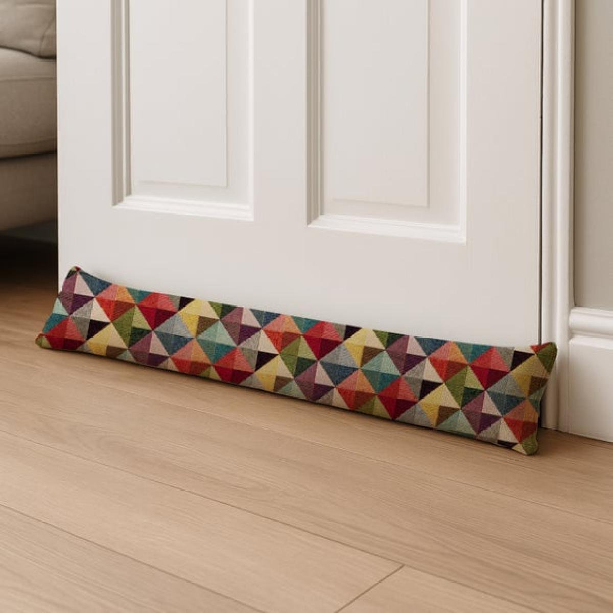 I really like this giant gemstone draught excluder - it brings a pop of colour and texture that can elevate plain or neutral interiors. It works particularly well in eclectic, boho, or contemporary schemes where playful accessories add personality. Its bold geometric pattern can also provide an interesting contrast in more minimal or Scandi-style rooms, adding visual interest without overpowering the space. For styling tips, consider pairing it with other colourful or textured accessories such as cushions or rugs to create a cohesive look. Plus, it’s practical too, helping to keep draughts out and warmth in, making it both a stylish and functional choice.
