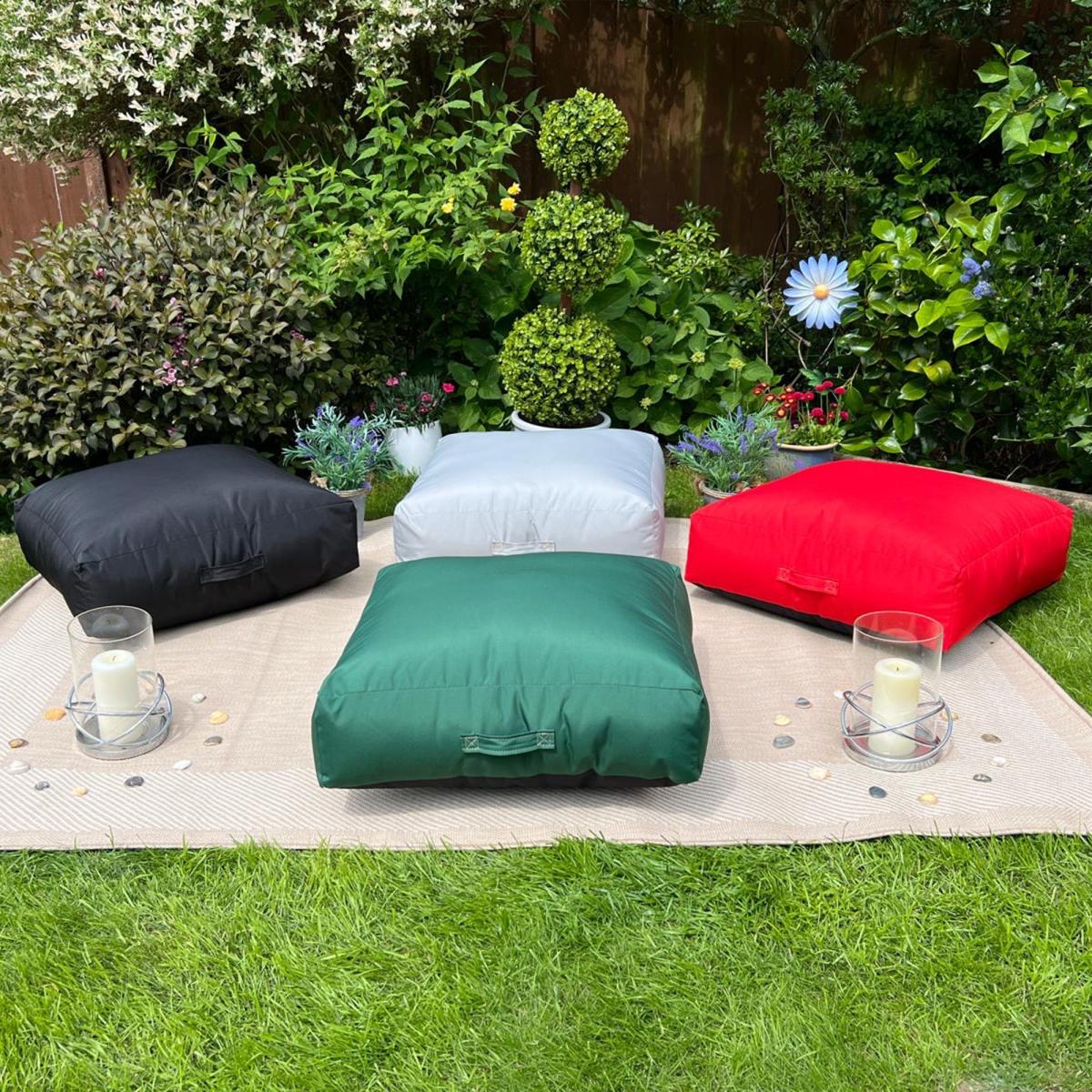 * Square Floor Cushion, great for easy additional seating* Hard-wearing black bottom for extra durability for use outdoors* Made in water reistant fabrics* 100% Recycled Luxury Fibre Filling* Concealed zip opening* Removable inner for easy cleaning* Handle for easy carrying and moving* Colourways available to match your living space This Square Floor Cushion is ideal for additional outdoor seating, featuring a hard-wearing black bottom for extra durability and made from water-resistant fabrics. With a 100% recycled luxury fibre filling, a concealed zip opening, and a removable inner for easy cleaning, it comes with a handle for easy carrying and multiple colour options to match your outdoor space.